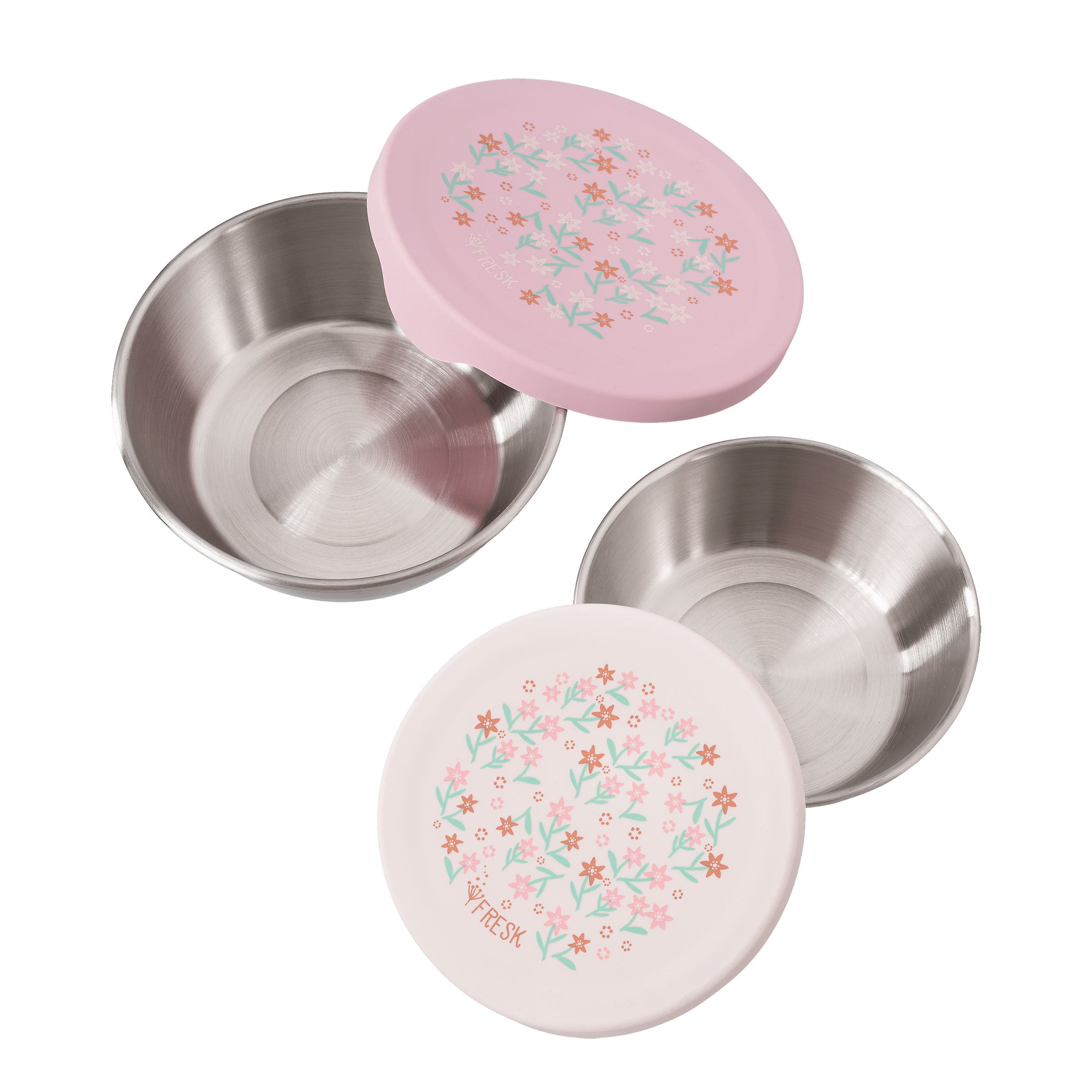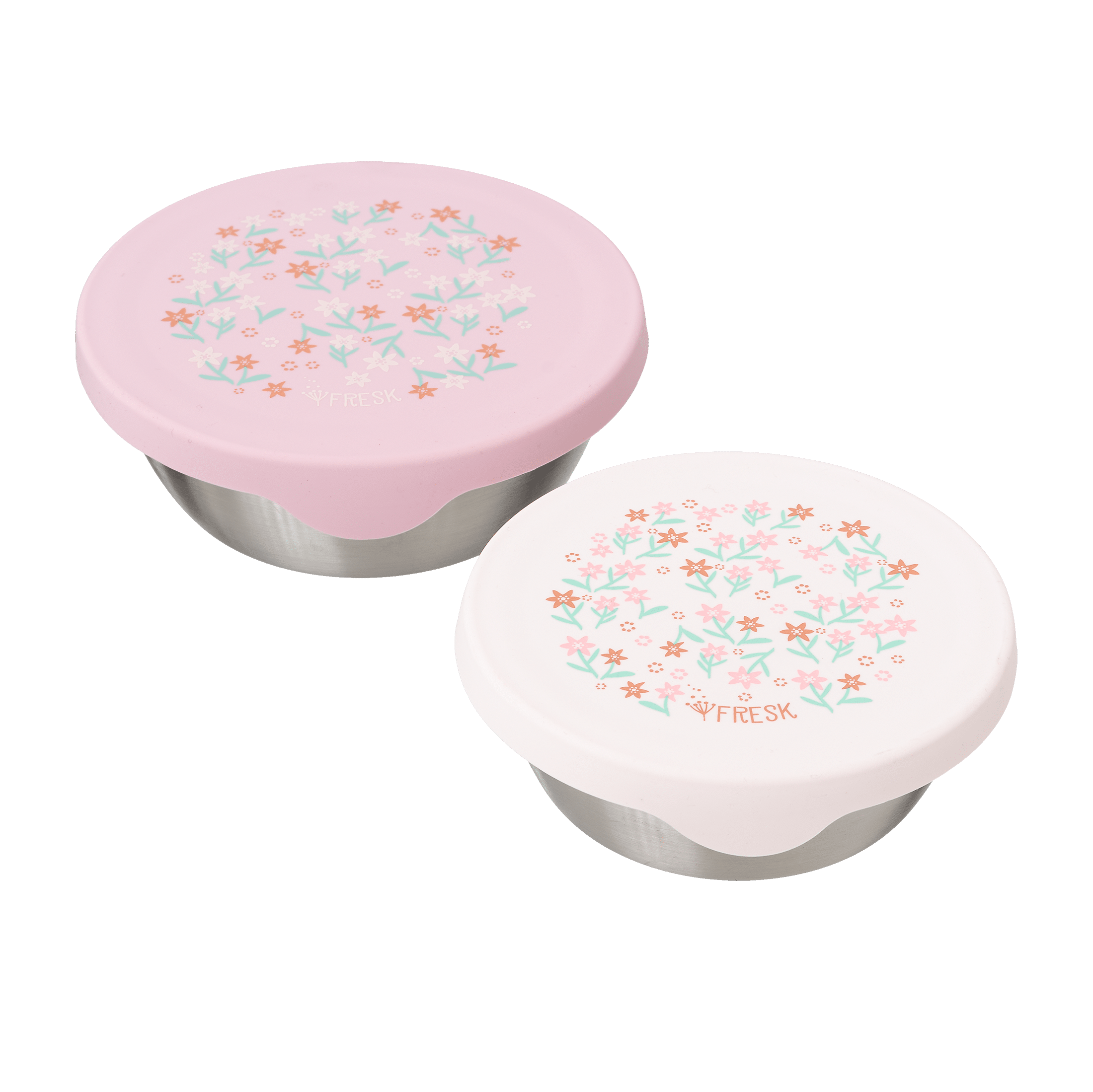 Dve dózy sú vyrobené z pevnej nehrdzavejúcej ocele a majú praktické silikónové viečka. Oceľové dno zabezpečuje, že nenaťahujú farbu ani vôňu z potravín, a flexibilné silikónové viečko ľahko otvoria aj malé detské rúčky.