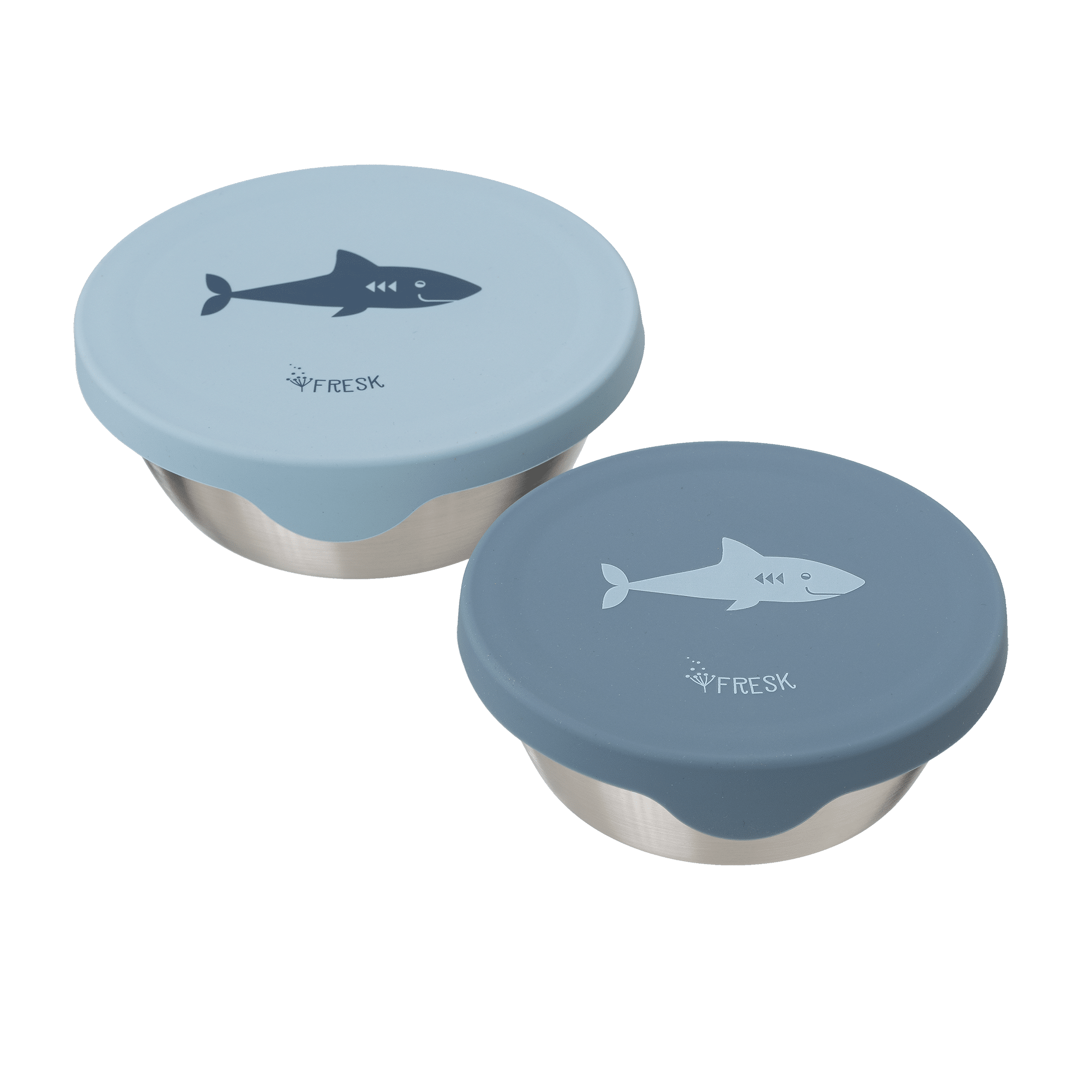Dve dózy sú vyrobené z pevnej nehrdzavejúcej ocele a majú praktické silikónové viečka. Oceľové dno zabezpečuje, že nenaťahujú farbu ani vôňu z potravín, a flexibilné silikónové viečko ľahko otvoria aj malé detské rúčky.