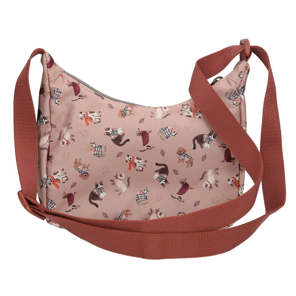 Roztomilá taška cez plece s potlačou TOPModel FUR EVER FRIENDS na zips, ozdobený farebnými bambuľkami. Vpredu dve vrecká na zips na drobnosti a nastaviteľná dĺžka traku. Rozmery: 20x15x6 cm