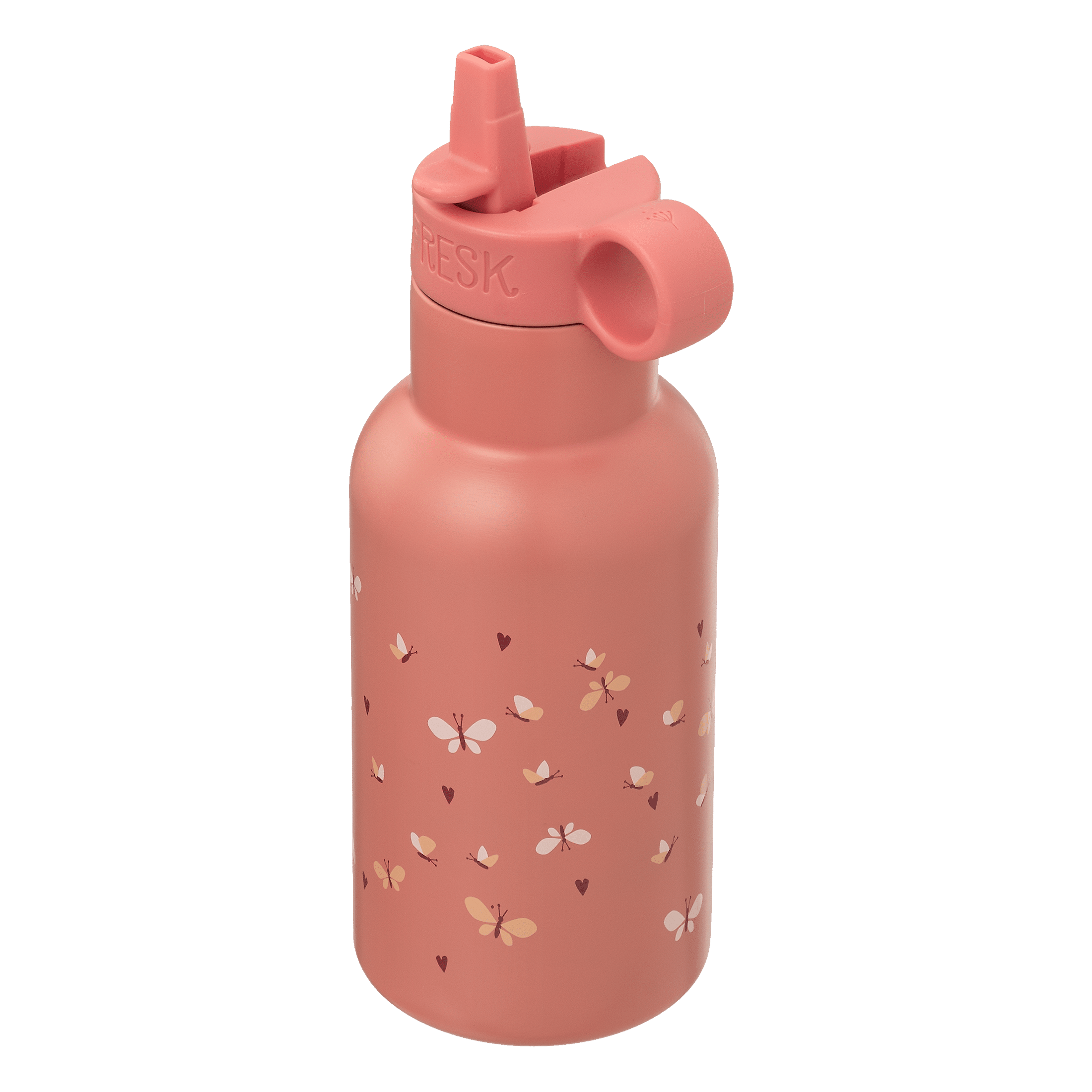 Udržujte zdravý životný štýl vďaka termofľaši FRESK. Udržuje nápoj v teple alebo chlade po dobu 8 hodín, vďaka dvojitej nerezovej stene. Vnútorn strana fľaše je bez pridaného povlaku, takže neuvoľňuje do pitia žiadne chemikálnie a tiež je bez obsahu BPA. Fľaša má objem 350ml, je vyrobená z nerezovej ocele, čo z nej robí odolnú na použitie na cestách. Nie je vhodná do umývačky riadu a do mikrovlnnej rúry. Balenie obsahuje dva typy uzáverov - šróbovací nerezový alebo športový so slamkou (v balení tiež kefka na čistenie slamky). Termofľaša Fresk sa stane vaším ekologickým pomocníkom, nech sa chystáte kdekoľvek. Vďaka praktickému ušku na uzávere je jednoducho uchopiteľná alebo zavesiteľná na kočík. Vaše dieťatko fľašku využije pokojne aj do škôlky či školy.