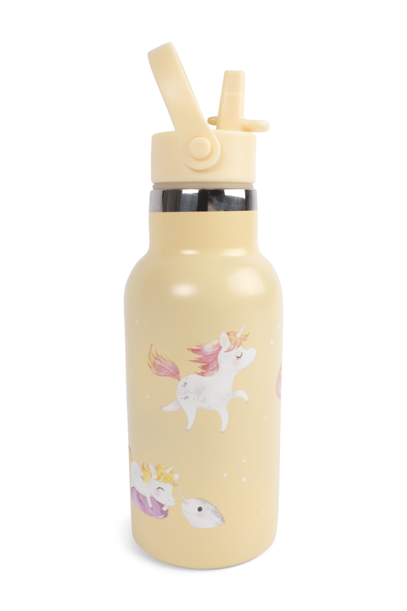Fľaša obsahuje dve vymeniteľné viečka: klasické skrutkovacie viečko pre bezpečné prenášanie a viečko s integrovanou slamkou, ktoré umožňuje pohodlné pitie na cestách. Vyrobená z nehrdzavejúcej ocele udrží nápoje studené alebo teplé až 12 hodín – ideálne, aby ste mali vždy správnu teplotu, nech vás dobrodružstvo zavedie kamkoľvek. Fľašu odporúčame umývať ručne.