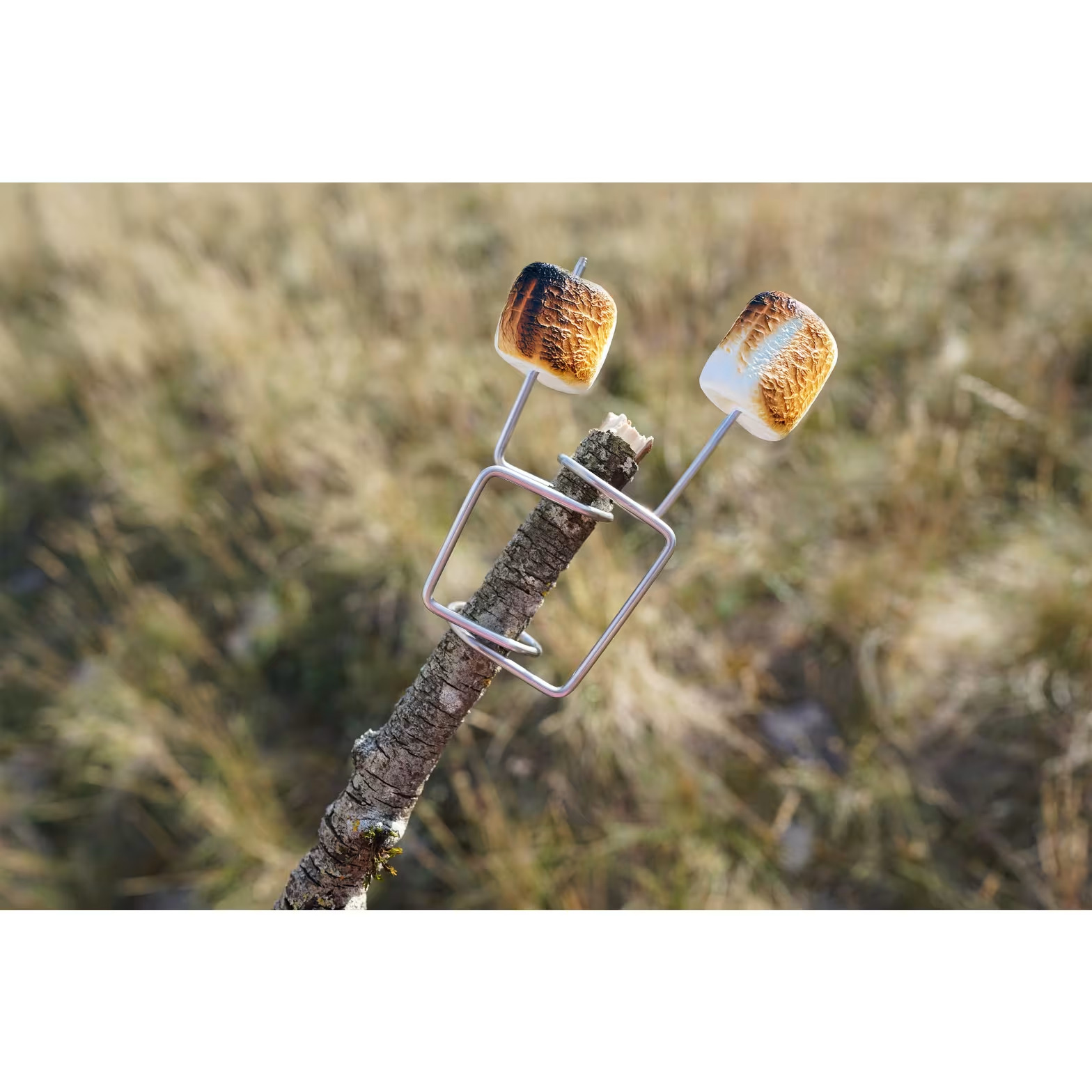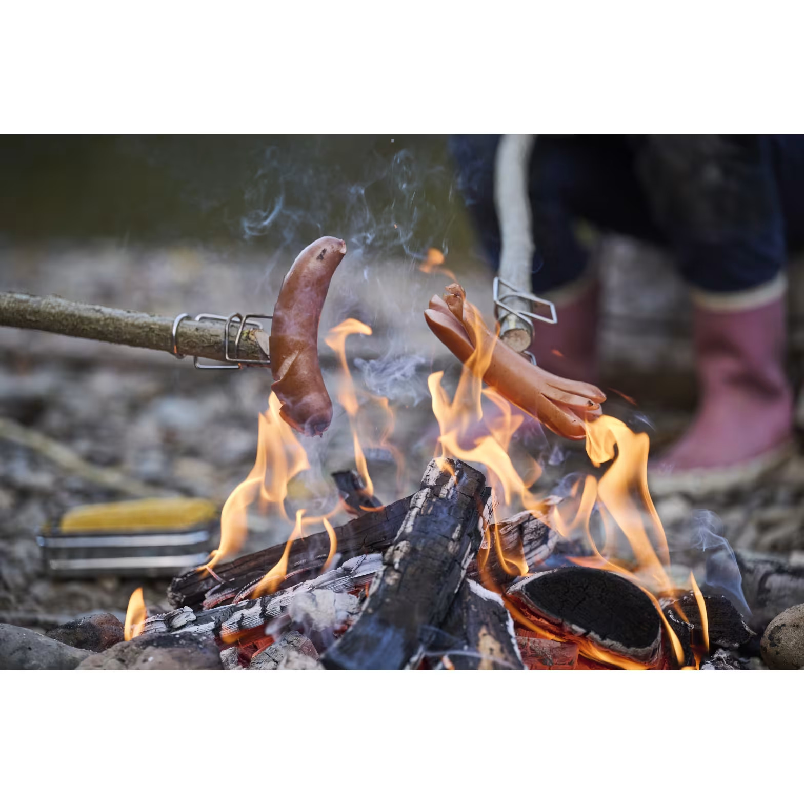 Násada na opekanie z nehrdzavejúcej ocele je dokonalý spoločník pre každé táborákové dobrodružstvo! Či už opekáte marshmallows, zeleninu alebo párky – s týmto spoľahlivým pomocníkom zostane všetko bezpečne napichnuté nad ohňom. Vďaka dvojitému hrotu sa jedlo pri opekaní nepootáča a drží pevne na mieste. Ohybná nehrdzavejúca oceľ umožňuje flexibilné narábanie a prispôsobenie uhla opekania podľa potreby. Po použití jednoducho hodíte špíz do umývačky riadu – žiadna starosť s čistením. Ideálny na camping, detské narodeniny aj záhradné posedenia.