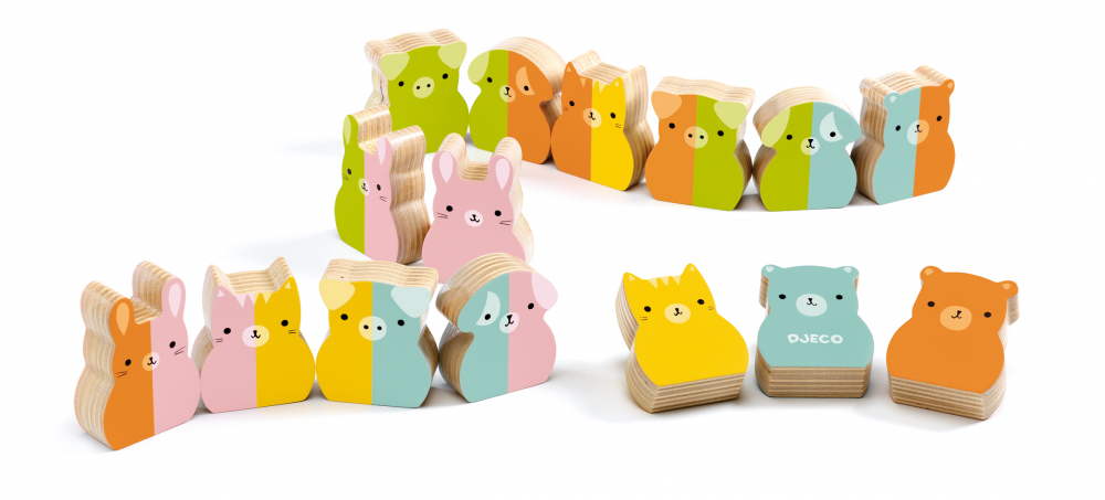 Drevené domino obsahujúce 15 roztomilých zvieracích figúrok pastelových farieb. Figúrky sú dostatočn...zobraziť viac