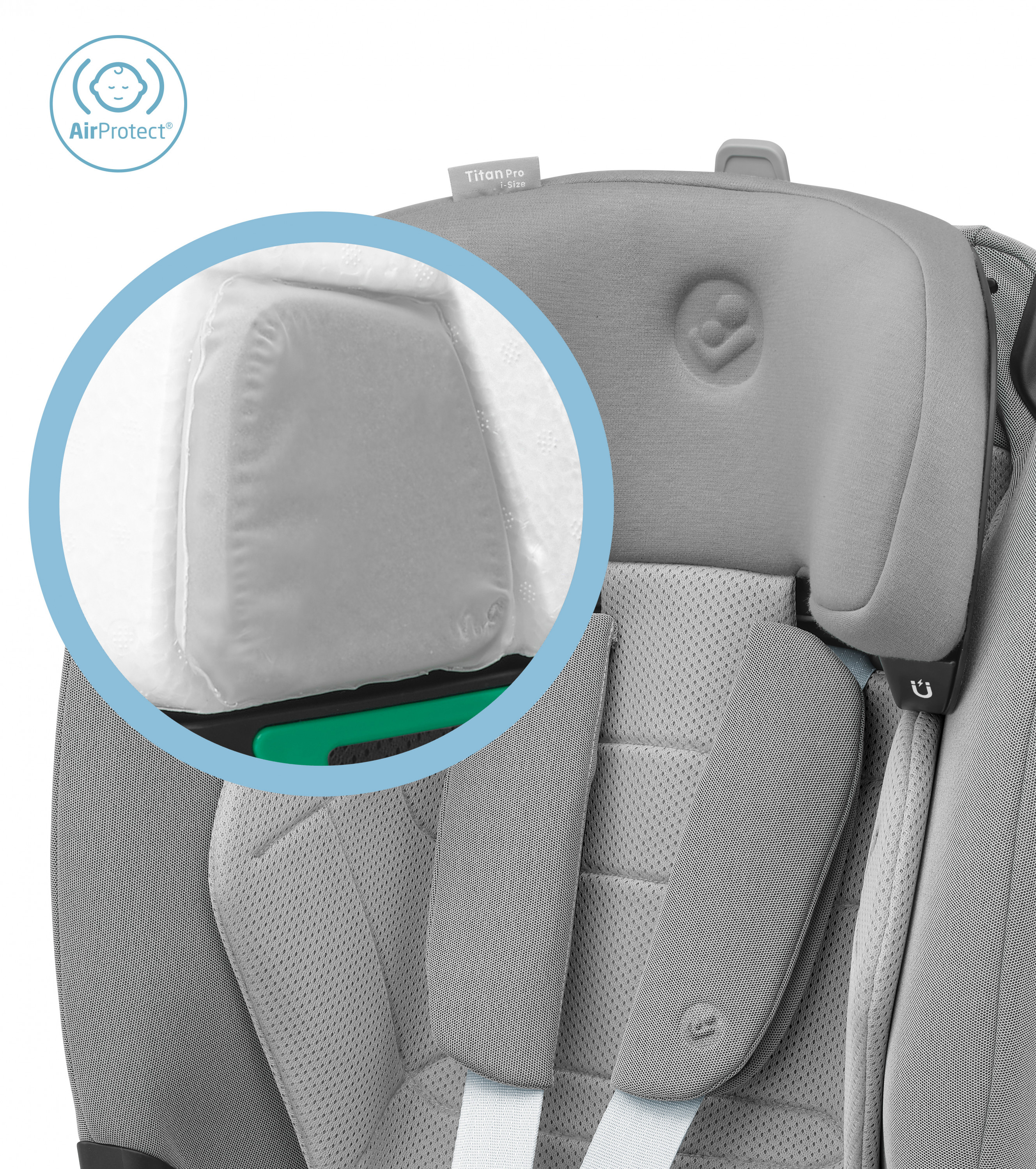 Autosedačka Maxi-Cosi Titan Pro i-Size je multi-veková autosedačka vhodná pre deti od 15 mesiacov do 12 rokov (od 76 do 150 cm). Autosedačka vyniká patentovanou technológiou proti bočnému nárazu, najmä v oblasti ramien a hlavy. Inovatívna plastová štruktúra technológie G-CELL pomáha výrazne znížiť vplyv v prípade bočného nárazu. Vďaka funkcii ClimaFlow zaistí dieťaťu maximálnu tepelnú pohodu na cestách.