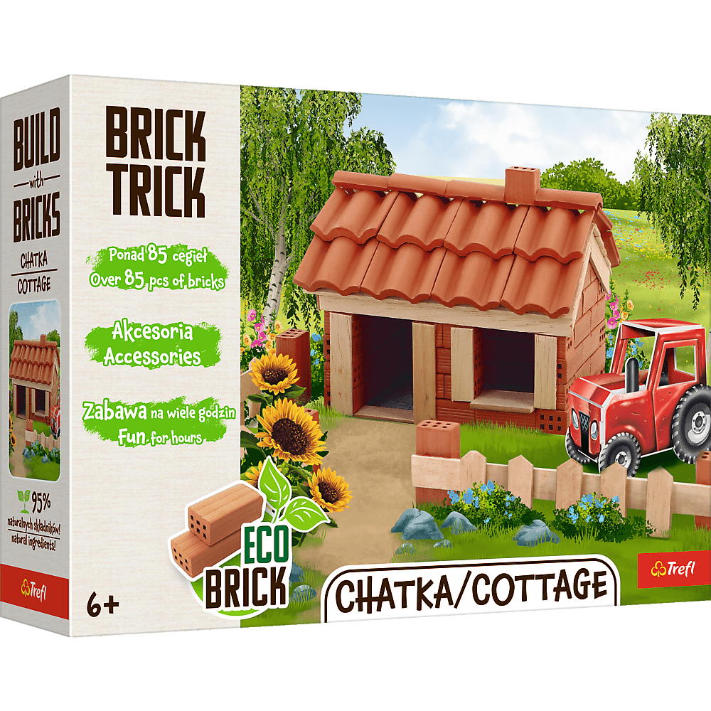 Stavebnice Brick Trick zlepšujú manuálne zručnosti, rozvíjajú predstavivosť a podporujú sústredenie. Staňte sa staviteľom a budujte zo skutočných hlinených tehál a dreva. Skladajte tehlu za tehlou, režte a lepte dosky, postupujte od základov až po dokončenú budovu a nakoniec svoj výtvor ozdobte priloženými dekoráciami. Stavajte krok za krokom podľa návodu alebo nájdite a zrealizujte svoje vlastné riešenie. Oživte svoju dokončenú stavbu papierovými figúrkami.