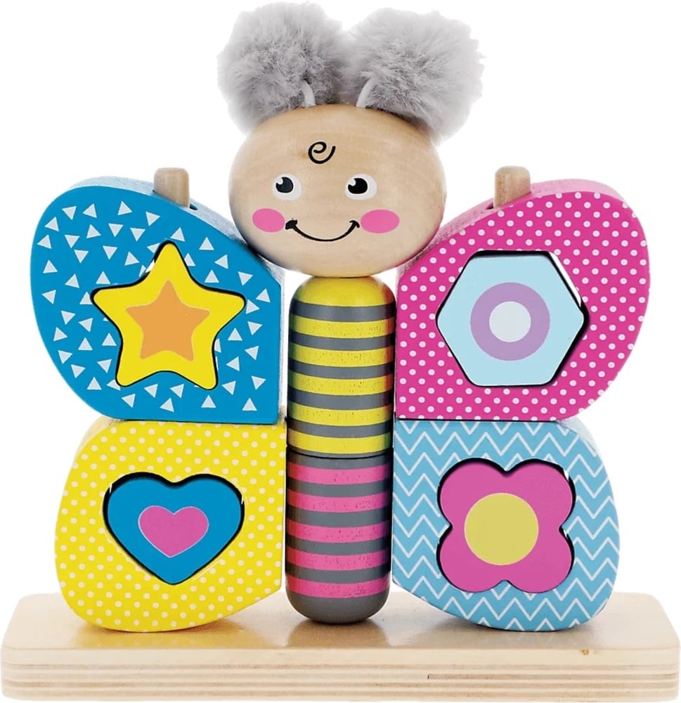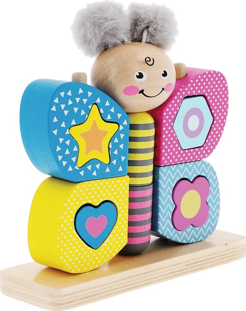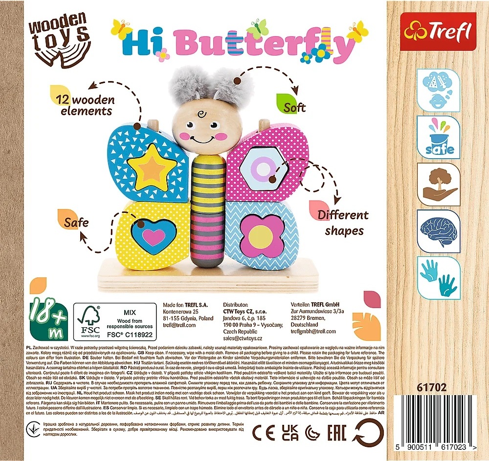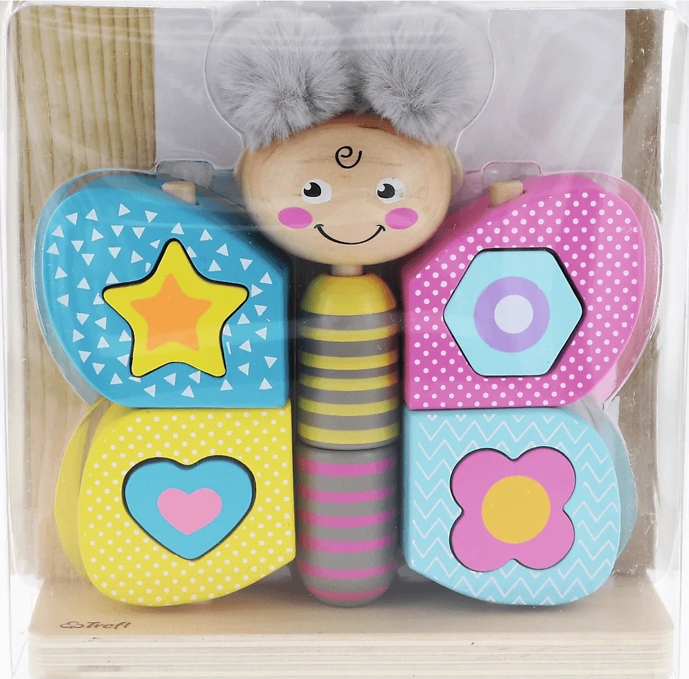 Hi Butterfly je hračka vyrobená z kvalitného prírodného dreva a plyšu. Ide o ideálne riešenie pre deti od 18 mesiacov: krídla v rozloženom stave fungujú ako triedička, motýľ pozostáva z 11 pohyblivých kociek, ktoré podporujú rozvoj obratnosti a motoriky dieťaťa a plyšové bambulky rozvíjajú hmat. Hračka podporuje rozvoj logického myslenia a všetky materiály použité na vytvorenie hračky sú certifikované a natreté netoxickými farbami. Rozmery balenia: 19,5x19x6,4 cm