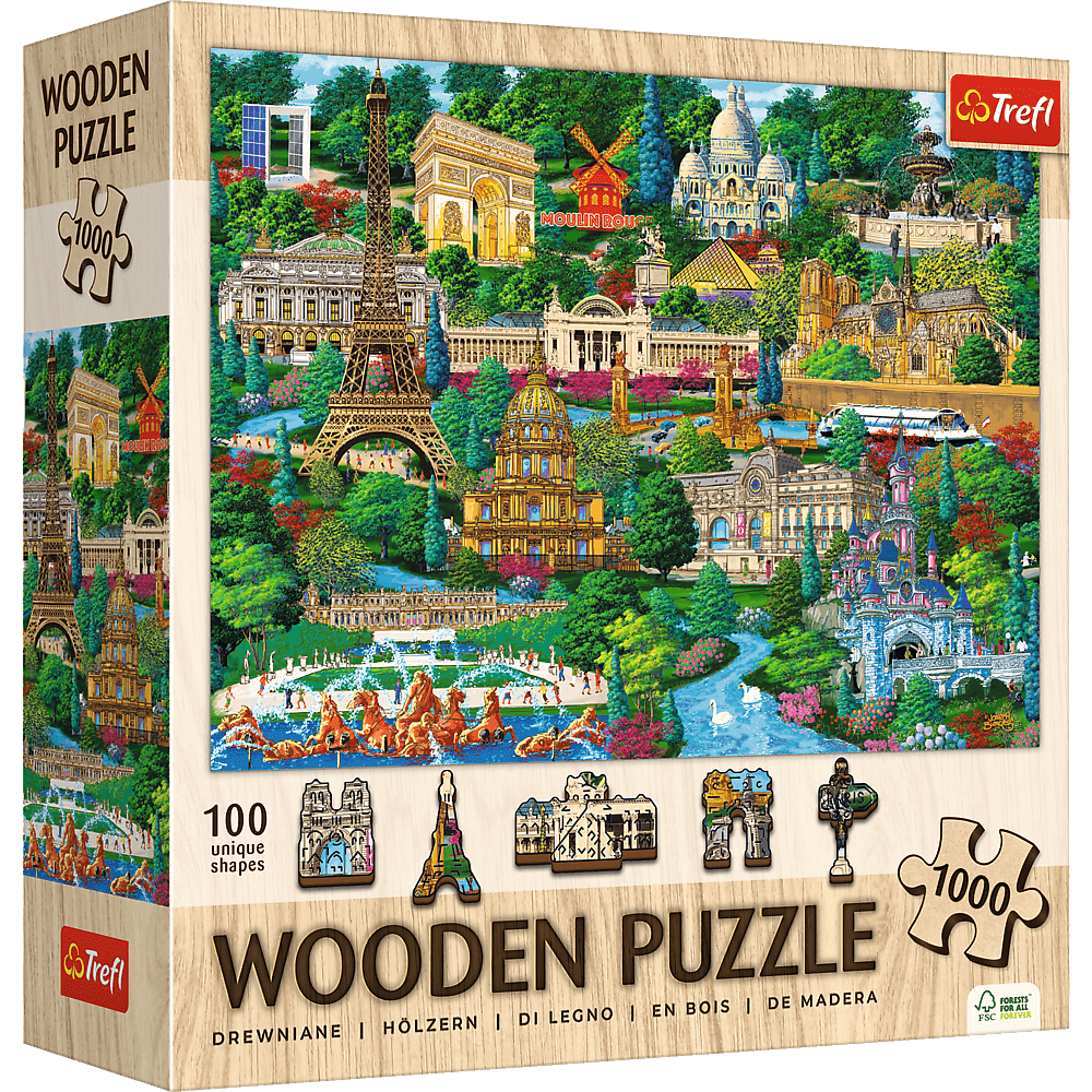 Hľadáte perfektné puzzle pre nadšencov puzzle? Vyberte si toto drevené puzzle s 1000 dielikmi, ktoré zobrazuje slávne pamiatky Francúzska! Toto jedinečné puzzle vám umožní vytvoriť úžasný obrázok s rozmermi 51,9 x 37,5 cm. Puzzle sú vyrobené z vysoko kvalitného dreva, čo zaručuje odolnosť a radosť zo skladania. Navyše, z dôvodu ochrany životného prostredia je obal vyrobený výlučne z kartónu – žiadny plast! Nie sú to obyčajné puzzle – sada obsahuje: 1000 nepravidelných prvkov, ktoré poskytujú dodatočnú výzvu a zábavu, vrátane až 100 figúrok v tvare francúzskych pamiatok a symbolov, ktoré dodávajú hádanke charakter a premieňajú každé hranie hádanky na dobrodružstvo. Drevené puzzle v ekologickom kartónovom obale, obsahujú 1000 dielikov. Poskladaním puzzle vznikne obrázok 51,9 x 37,5 cm. Puzzle obsahujú dieliky nepravidelných tvarov a 100 unikátnych dielov.