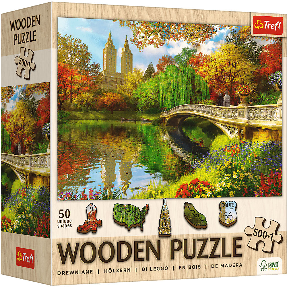 Drevené obojstranné puzzle so špeciálne tvarovanými dielikmi. Puzzle je vyrobené zo silnej drevovláknitej dosky a vyrezané laserom, vďaka čomu sú okraje hladké a dieliky do seba ľahko zapadajú. Vysoká kvalita a precízne spracovanie laserom, až 50 unikátne tvarovaných dielikov, ostatné dieliky v nepravidelných tvaroch, puzzle je obojstranné – z jednej strany obrázok, z druhej strany vzor.