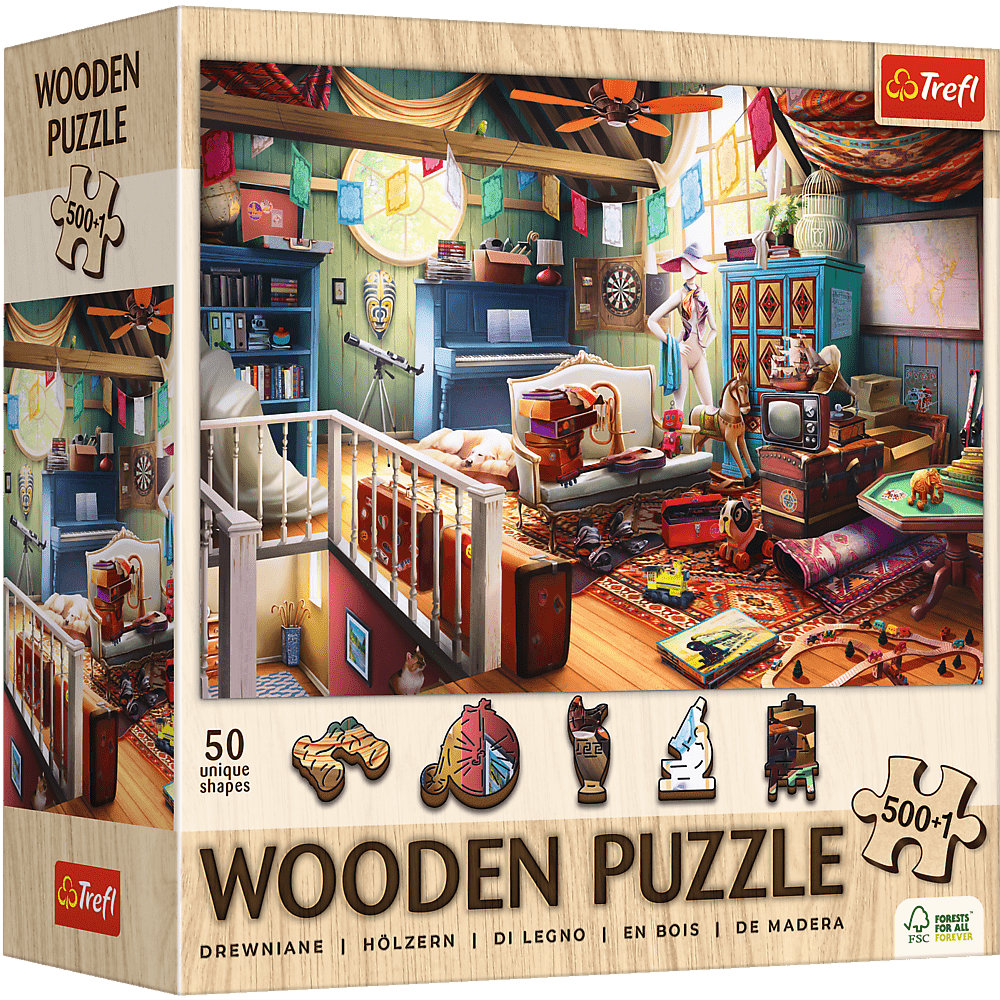 Trefl Drevené puzzle 501 - Poklady v podkroví
