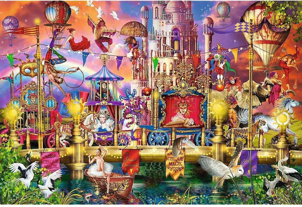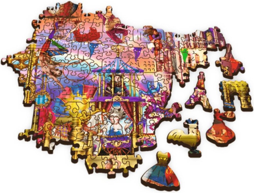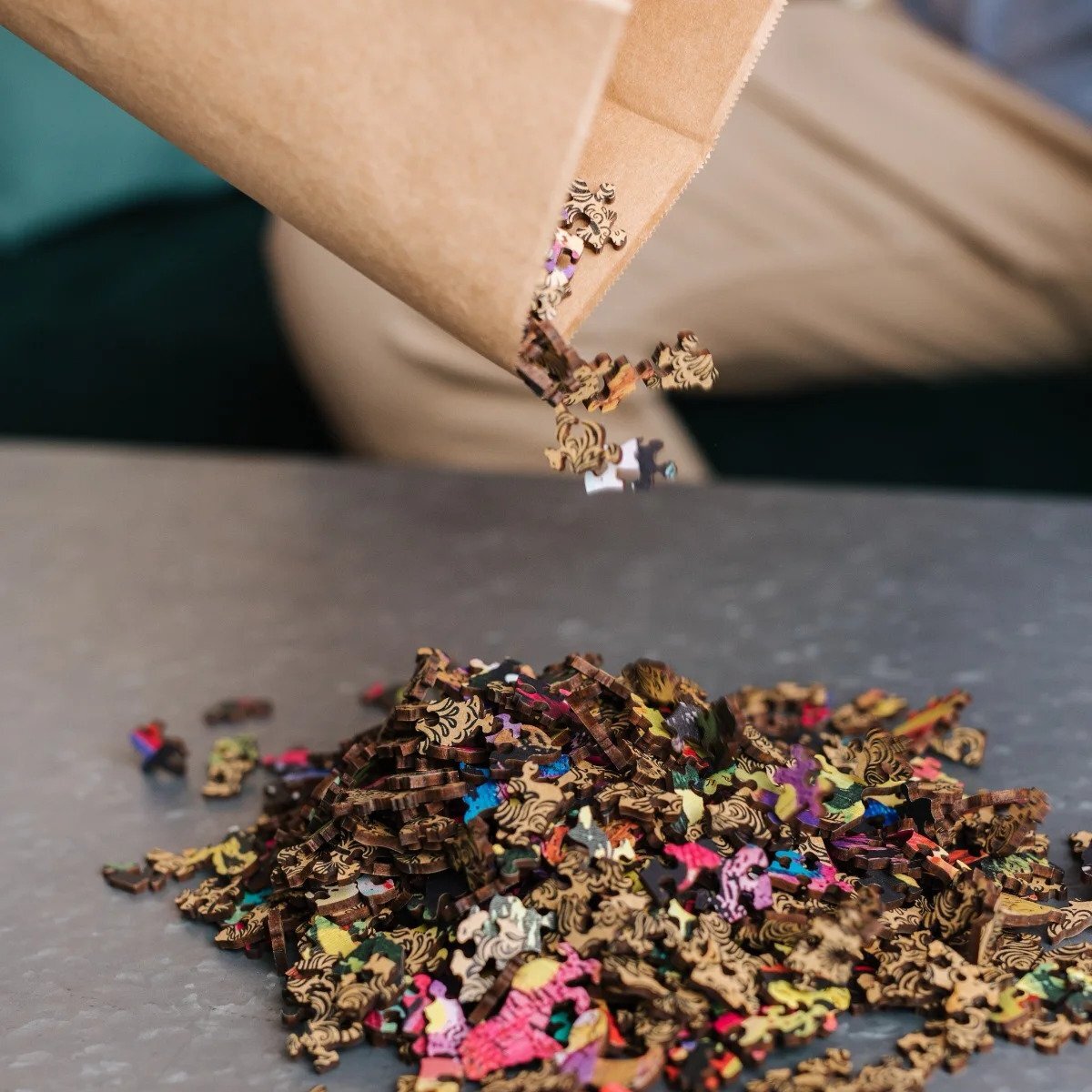 Drevené puzzle v ekologickom kartónovom obale, obsahujú 500+1 dielikov. Poskladaním puzzle vznikne obrázok 37,5 x 25,4. Puzzle obsahujú dieliky nepravidelných tvarov a 50 unikátne tvarovaných dielov v tvare budov, predmetov či zvierat.