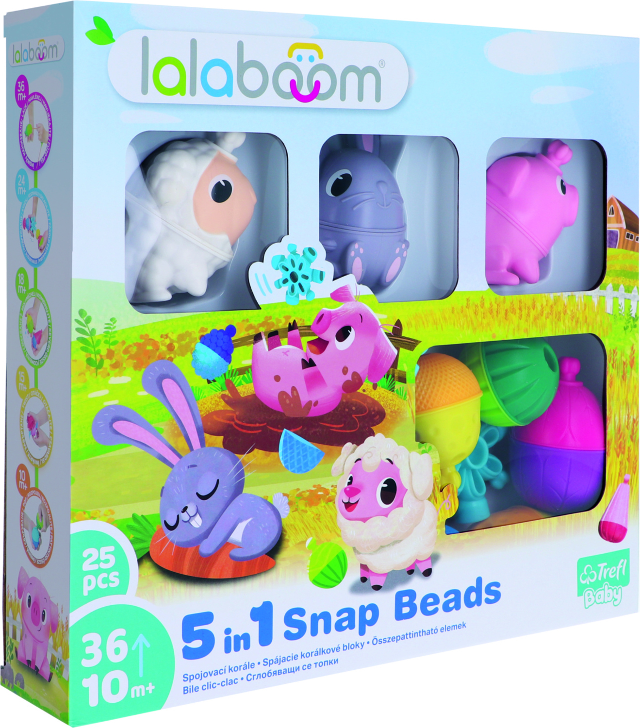 Súprava spájacích korálkových blokov Lalaboom je výnimočná senzorická hračka. Spájacie korálkové bloky stimulujú rozvoj dieťaťa, ktoré sa učí vnímať a interpretovať vnemy pochádzajúce z okolitého prostredia. Pomáha rozvíjať všetky zmysly, predovšetkým zrak, sluch a hmat. Bloky Lalaboom stimulujú správny rozvoj dieťaťa a umožňujú využívať rôzne varianty rozvojovej hry. Objavujte svet s Lalaboom! Bloky sa dajú navzájom spájať, pripájajúc jeden blok k druhému. Spájacie korálkové bloky sa dajú rozkladať a skladať. Dajú sa ľubovoľne kombinovať, a tak vytvárať rôznorodé farebné konštrukcie. Jediným ohraničením je vlastná predstavivosť! Vďaka hre so spájacími korálkovými blokmi sa dieťa učí vo vlastnom tempe. Spájacie korálkové bloky s rôznymi farbami, tvarmi a štruktúrami poskytujú rôznorodé dotykové vnemy. Neobyčajný výrobok, ktorý rastie spolu s dieťaťom a podporuje jeho rozvoj na viacerých úrovniach. Pomáha zdokonaľovať presnosť pohybov rúk, dôkladnosť uchopovania prstami, a tiež otočné pohyby zápästí. Umožňuje tiež cvičiť zrakovo-pohybovú koordináciu, rozvíja kreativitu a priestorovú predstavivosť. Hračky, ktoré podporujú senzorický rozvoj dieťaťa! Spájacie korálkové bloky stimulujú rozvoj senzorickej integrácie, ktorá je spätá s procesom organizácie zmyslových vnemov. Náš mozog funguje tak, aby dokázal vnímať čo najviac vnemov, a formuje sa pod vplyvom týchto skúseností. Preto je dôležité, aby hračky poskytovali rôznorodé dotykové, zrakové či sluchové zážitky. Musia tiež umožňovať rôznorodú manipuláciu s predmetmi. Séria Lalaboom spĺňa tieto potreby. Zaručuje dieťaťu kontakt s predmetmi s rozličnými tvarmi a štruktúrami. Malé dieťa počas hry so spájacími korálkovými blokmi rozvíja svoje schopnosti vnímania vnemov z dlaní. Inšpirované Montessori Súpravy Lalaboom sú inšpirované metódou Montessori, ktorá hlása, že deti sa učia predovšetkým konaním, skúsenosťou. Veľký dôraz sa kladie na presnosť, systematickosť a samostatnosť. Spájacie korálkové bloky Lalaboom vznikli, aby podporovali všestranný rozvoj detí, príslušne podľa individuálnych možností a schopností každého dieťaťa. Bezpečnosť je najdôležitejšia! Spájacie korálkové bloky sú vyrobené z bezpečného plastu. Sú určené pre deti vo veku už od 10 mesiacov. Každá hračka Lalaboom musí prejsť sériou veľmi prísnych testov. Výrobky Lalaboom spĺňajú všetky štandardy, ktoré platia v Európskej únii (CE), Spojených štátoch (ASTM), Kanade (SOR) a Austrálii (ISO). Bližšie informácie o výrobku: Hračka má certifikáty BPA FREE, PVC FREE, PHTHALATE FREE. Ak je súčasťou súpravy hračky šnúrka, má menej než 20 cm, a plastová časť na navliekanie je elastická. Koráliky s rozmermi približne 7,5 x 5 x 5 cm. Hračky nemajú malé prvky, vďaka tomu pre malé deti nepredstavujú väčšie riziko. Vysoká kvalita zhotovenia a materiálov, trvácnosť a pevnosť. Ľahké čistenie, balenie a prenášanie. Hračka rastie spolu s dieťaťom! Vek 10 mesiacov je skvelý moment na: SPÁJANIE! POCITOVÉ POZNÁVANIE Dieťa približne vo veku 10 mesiacov objavuje, že spájacie korálkové bloky LALABOOM sa dajú navzájom spájať, upevňovať. Rôznorodé textúry nabádajú k novému objavovaniu. Vek 15 mesiacov je skvelý moment na: ZAKRÚCANIE: UČENIE OTVÁRANIA A ZATVÁRANIA Približne vo veku 15 mesiacov si dieťa začína všímať, že spájacie korálkové bloky sa dajú otvárať a zatvárať odkrútením a zakrútením. Dospelým sa to môže zdať samozrejmé, avšak pre malé dieťa je to užitočné cvičenie veľmi dôležitej motorickej zručnosti. Opakovanie tejto činnosti pozitívne ovplyvňuje rozvoj zručnosti. Vek 18 mesiacov je skvelý moment na: MIEŠANIE A SPÁJANIE Približne vo veku 18 mesiacov dieťa už dokáže vyberať náležité tvary a farby, ktoré navzájom mieša a spája. Vynikajúci spôsob, ako dieťa môže ukázať svoju kreativitu a to, čo sa mu páči. Môžete tiež dieťa požiadať, aby spájacie korálkové bloky náležite dopasovalo, čo zvyšuje schopnosť učenia sa a rozpoznávania tvarov a farieb. Vek 24 mesiacov je skvelý moment na: UČENIE STAVANIA A UKLADANIA Dieťa vo veku od 24 mesiacov už bude poznať rôzne možnosti spájania korálkových blokov LALABOOM. V tomto veku dokáže vytvárať rozličné pestrofarebné vlastné diela. Stavanie je veľmi dôležitou etapou rozvoja dieťaťa – zahŕňa v sebe schopnosť plánovania dopredu, využívať dostupný priestor a zavádzania vlastných nápadov, a súčasne dáva dieťaťu obrovskú spokojnosť. Vek 36 mesiacov je skvelý moment na: NAVLIEKANIE Deti môžu spájacie korálkové bloky LALABOOM pod dohľadom dospelého navliekať. Navliekanie predstavuje pre rozvoj dieťaťa viacero výhod. Je to prvý krok učenia písania. Táto činnosť zlepšuje jemnú motoriku dieťaťa, a tiež zlepšuje sústredenosť, presnosť a zrakovo-pohybovú koordináciuV súprave: 3 zvieratká – včielka, vtáčik, veverička (6 dielov) 16 dielov spájacích korálkových blokov 1 kvetový lupienok 1 spojka 1 šnúrka na navliekanie spájacích korálkových blokov rozmery škatule:300 x 60 x 275Vek: 10 až 36 mesiacov.