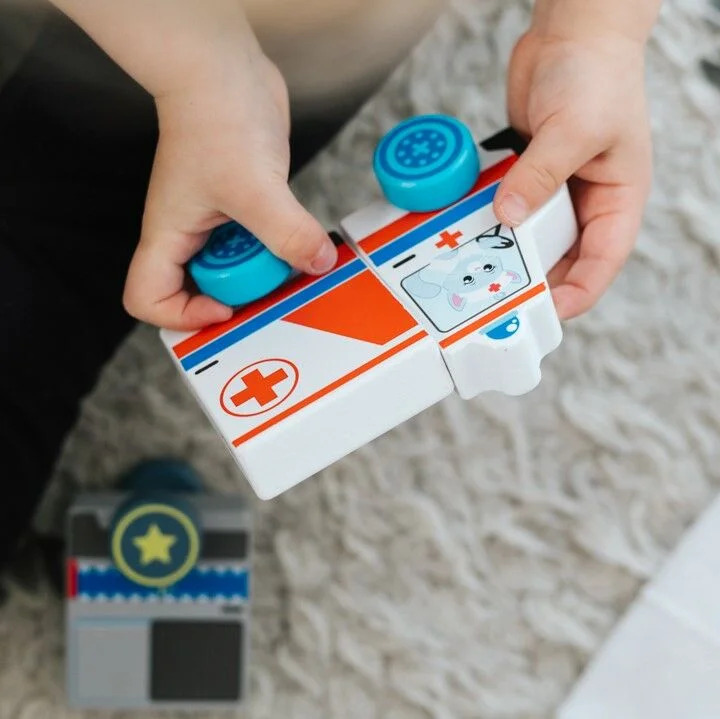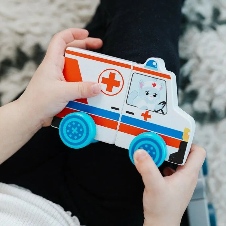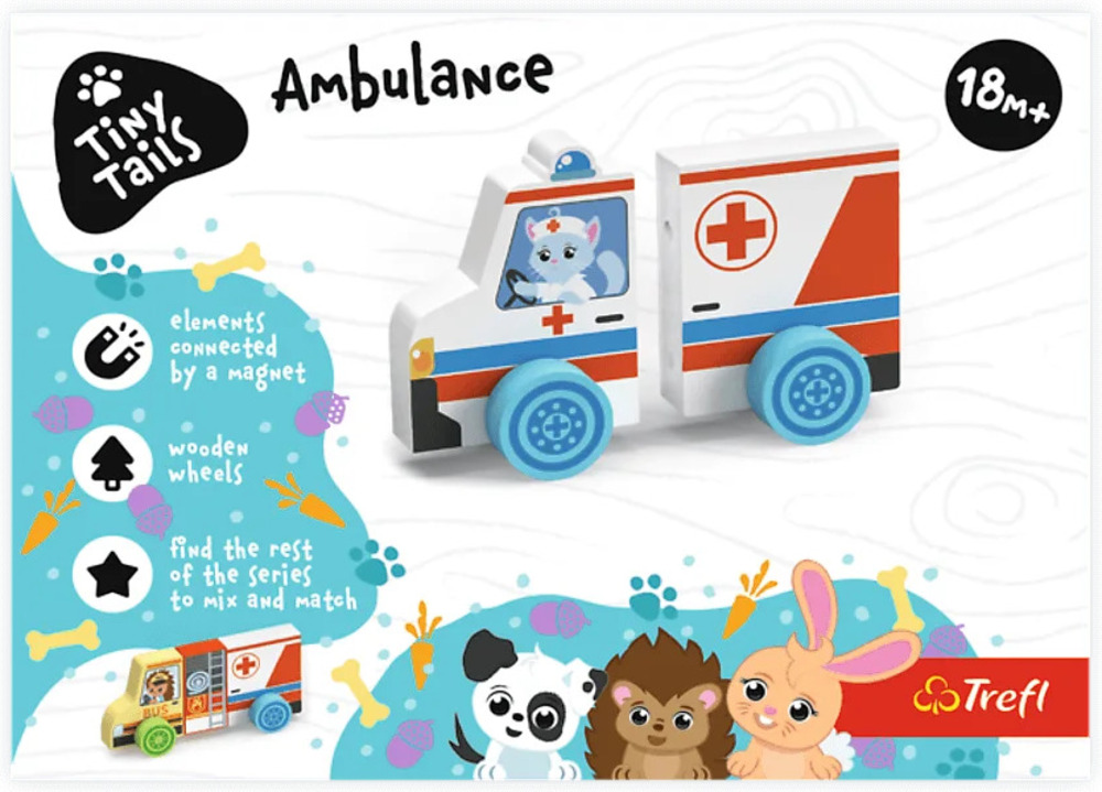 Magnetické vozidlo: Ambulance od Tiny Tails je jedinečná drevená hračka. Vozík sa skladá z dvoch magneticky spojených prvkov a otočných kolies. Magnetické časti je možné miešať a spájať s inými vozidlami zo série, čím odhaľujú ešte viac herných možností! Hračka posilňuje úchopový reflex a rozvíja koordináciu oko-ruka. Je vyrobený z bezpečných certifikovaných materiálov a drevené prvky sú vyrobené z dreva s certifikátom FSC.