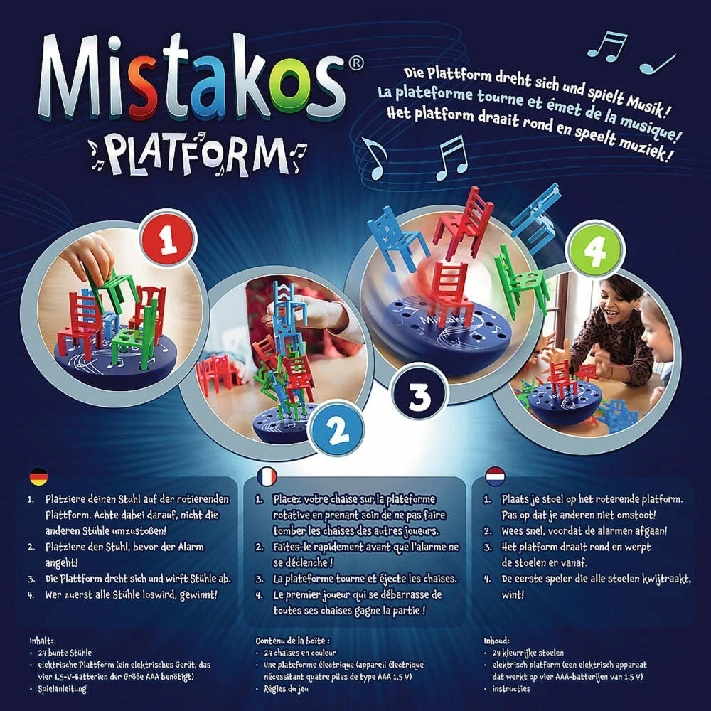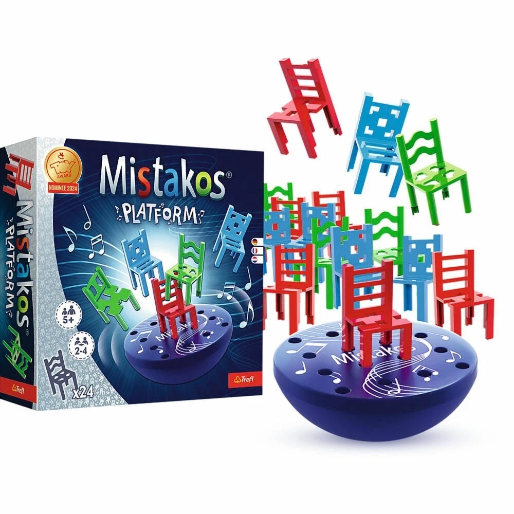 Mistakos Platform je najnovšia verzia populárnej hry so skladaním stoličiek s jedinečným zvratom. Hráči sa snažia umiestniť svoje stoličky na neustále sa otáčajúcu, kymácajúcu sa plošinu. Čo sa však stane, keď hudba prestane hrať? Určite nezostane veľa stoličiek. Nominovaná na cenu Toy Award 2024.