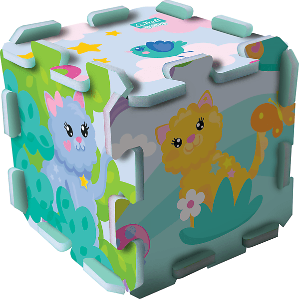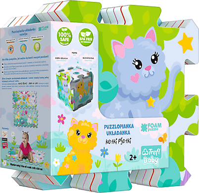 Penové puzzle - Mačiatka 2020. Obsahujú 8 veľkých, makkých, farebných a ľahko umývateľných dielov, z ktorých je možné stavať 3D tvary, ako napríklad kocku alebo krabicu. Môžu sa používať aj ako podložka na hranie. Penové puzzle rozvíjajú detskú predstavivosť, pomáhajú deťom učiť sa farby a tvary. Vyrobené z netoxického materiálu, BPA free. Vek 2+