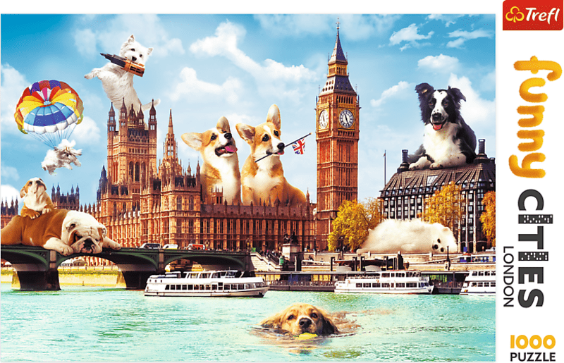 Trefl Puzzle 1000 dielikov - Psy v Londýne.Po položení sa vytvorí obrázok s rozmermi 68 x 48 cm. Použitie ekologických materiálov zaručuje vysokú kvalitu, sýtosť farieb a bezpečnosť pri stohovaní. Vek 12+