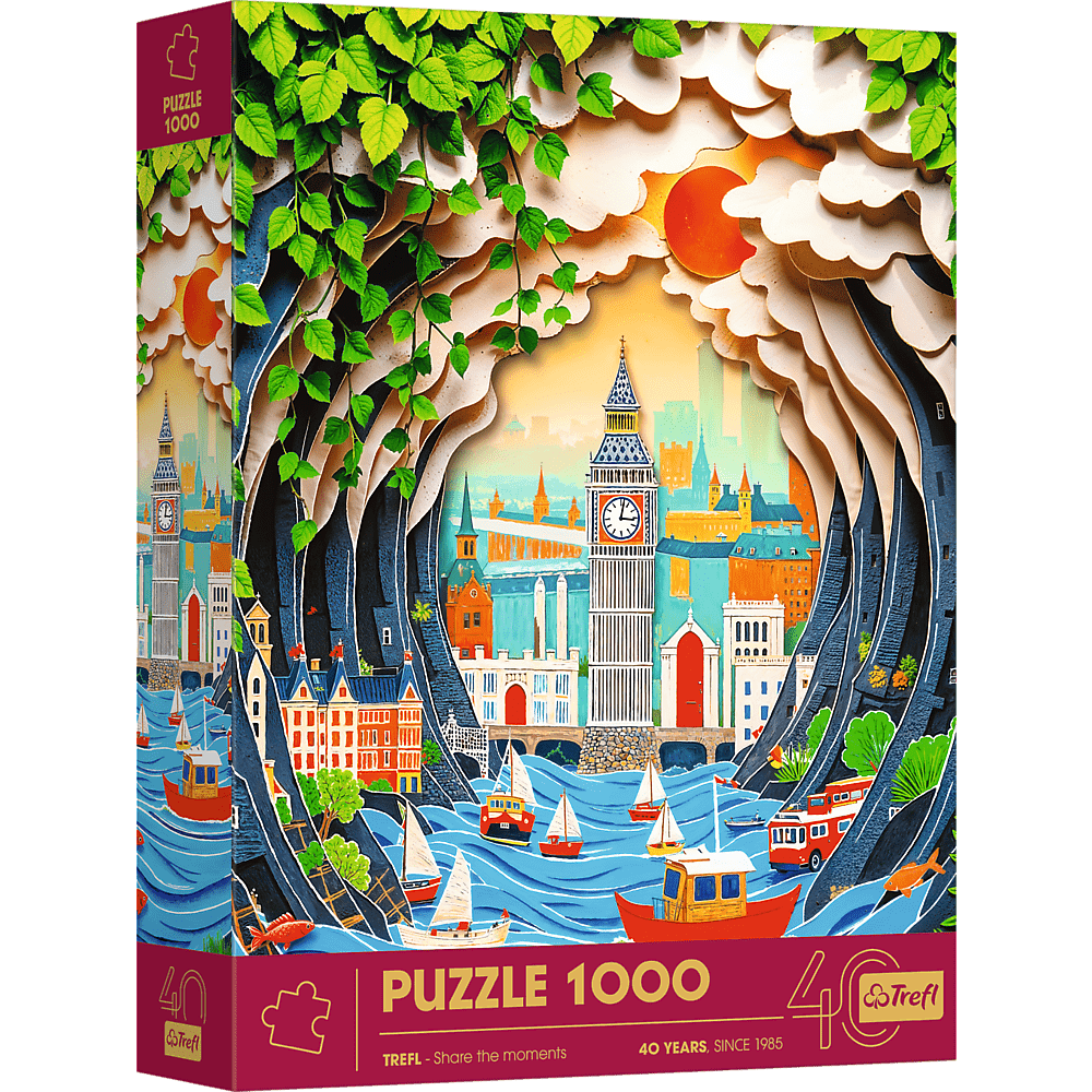 1000-dielne 3D puzzle „40. výročie Trefl – Londýn“ je súčasťou série puzzle s úžasným 3D efektom, ktorá bola vydaná pri príležitosti osláv výročia našej spoločnosti. Oslavujte s nami zostavením jedinečných obrázkov inšpirovaných papierovým umením ! Puzzle obsahujú 1000 dielikov. Rozmer zloženého obrázku: 683x480 mm