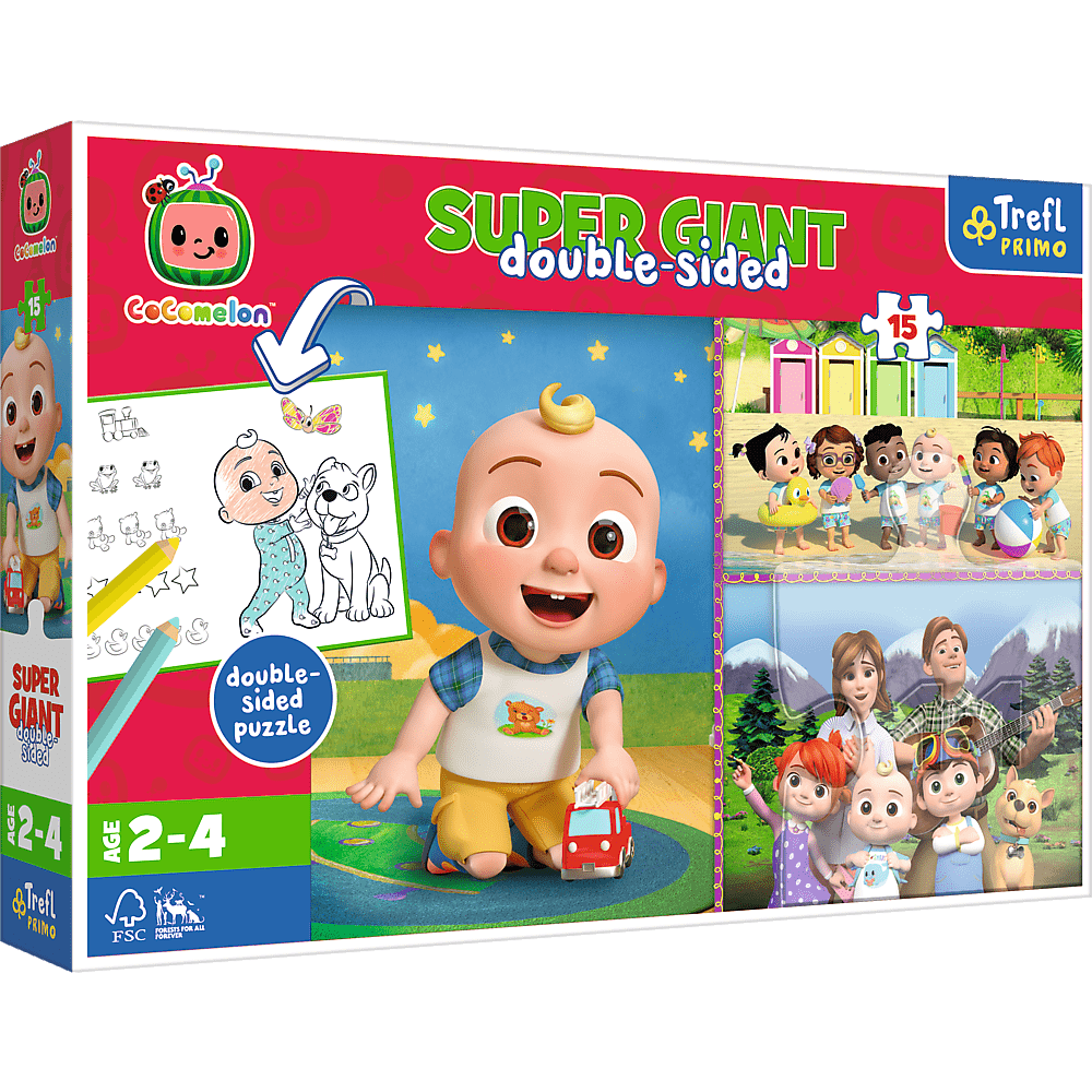 Tri hry v jednom produkte. Puzzle s 15 veľmi veľkými dielikmi pre najmenšie deti (od 2 rokov). Na zadnej strane puzzle je omaľovánka a jednoduchá hra s vyfarbovacími prvkami, s obrázkami obľúbených animovaných postavičiek.