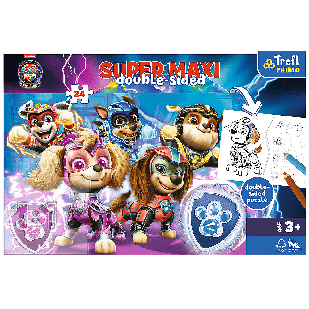 Tri hry v jednom produkte. Veľké obojstranné puzzle pre malé deti (od 3 rokov), obsahujú 24 veľkých dielikov. Ideálne pre deti, ktoré sa už hrali s puzzle s menším počtom dielikov. Na zadnej strane puzzle je omaľovánka a hra s farebnými prvkami, s obrázkami obľúbených animovaných postavičiek.