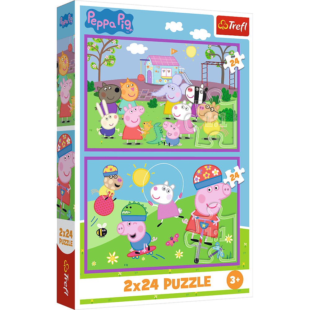 Puzzle 2x24 sú dve puzzle s 24 dielikmi v jednom balení! Skladanie sa tak stáva ešte zaujímavejším a môže sa ho zúčastniť viac najmenších. Každá skladačka umožní vytvoriť obrázok s rozmermi 275x180 mm.