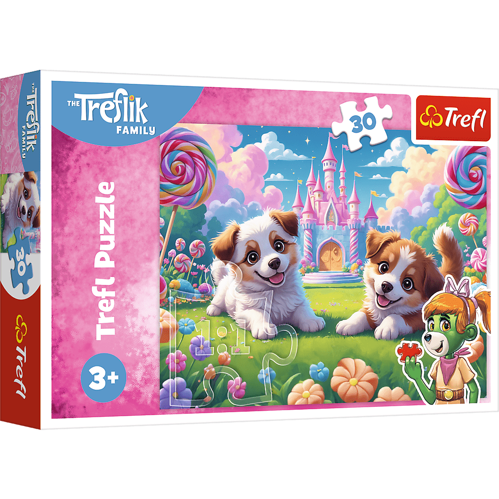Svet plný úsmevov je 30-dielna skladačka navrhnutá pre malých milovníkov psov. Po zložení vytvorí skladačka obrázok s rozmermi 270 x 200 mm zobrazujúci dve šteniatka v farebnej krajine s hradom v pozadí. Výrobok je vyrobený z vysoko kvalitných materiálov, s použitím špeciálneho kalandrovaného papiera, ktorý odráža svetlo, vďaka čomu sa ľahšie skladá. Puzzle obsahuje 30 dielikov. Poskladaním puzzle vznikne obrázok s rozmermi 270 x 200 mm.
