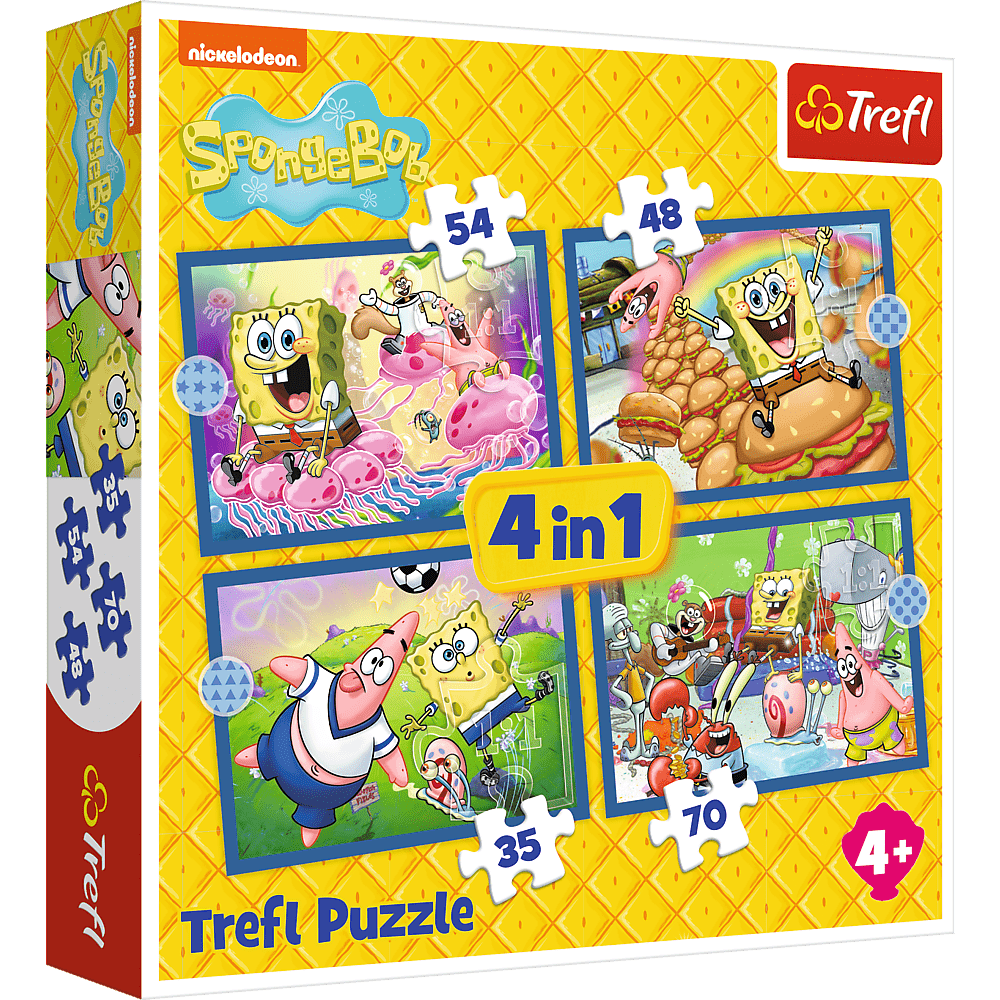 SpongeBobov podvodný život je sada štyroch samostatných puzzle pre deti, navrhnutá s ohľadom na mladých fanúšikov SpongeBobových dobrodružstiev. Po zostavení puzzle vytvoria štyri obrázky, pričom najväčší má rozmery 285 x 205 mm. 4 puzzle v 1 balení - obsahujú 35, 48, 54 a 70 dielikov.