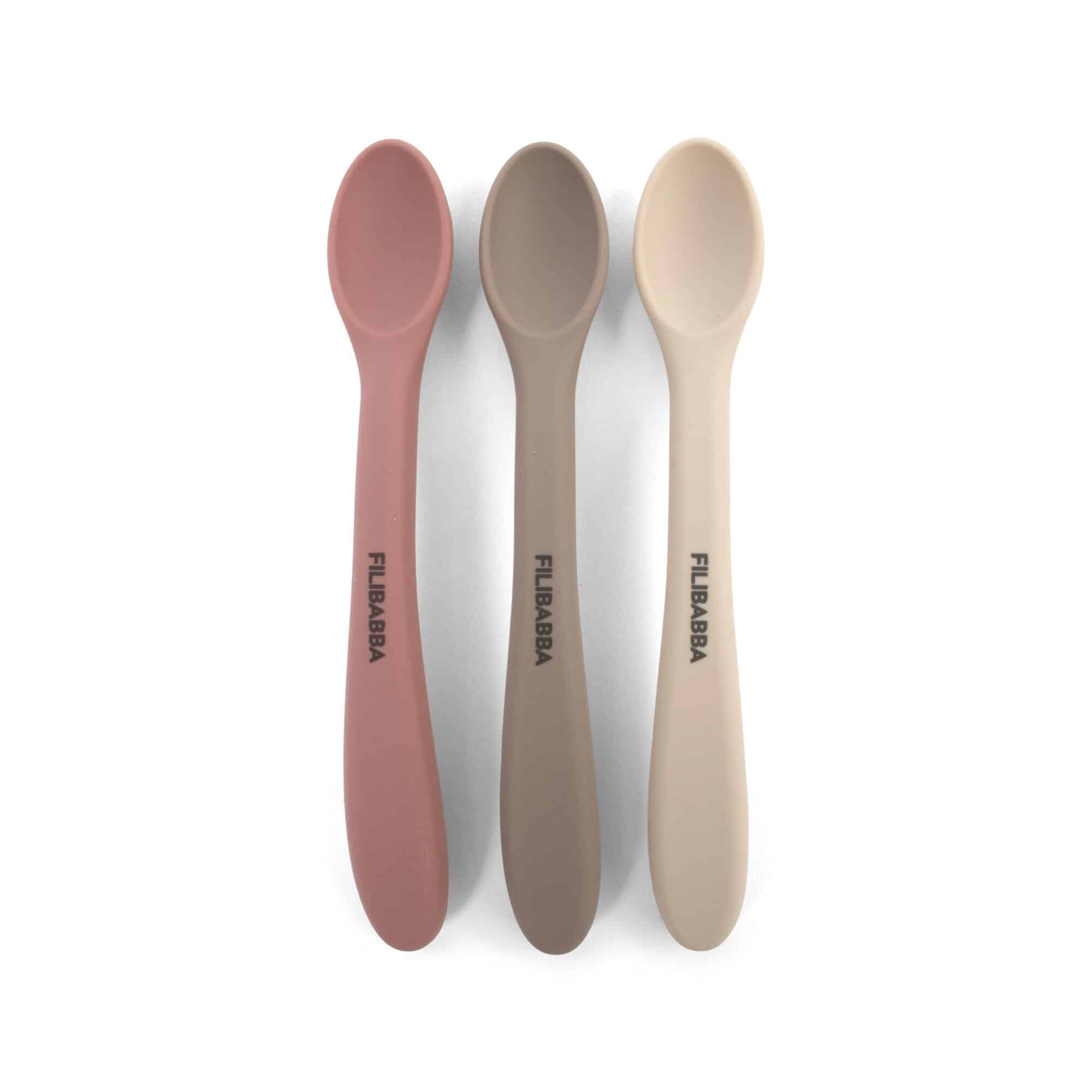 Navrhnuté s ohľadom na malé ústa, lyžičky majú mäkký silikónový povrch, ktorý chráni citlivé zúbky a upokojuje ďasná. Úzka hlavička lyžičky zaručuje pohodlné používanie, zatiaľ čo dlhá rukoväť je ideálna na kŕmenie a ľahké dosiahnutie do pohárov s detskou výživou. Sú vyrobené z potravinárskeho silikónu v kvalite LFGB s vnútorným plastovým jadrom pre väčšiu stabilitu, možno ich umývať v umývačke riadu a sú vhodné na každodenné používanie.