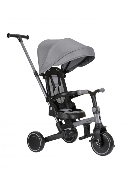 Pre maximálne bezpečie je trojkolka vybavená 5-bodovým pásom, odnímateľným bezpečnostným madlom a nastaviteľnou strieškou, ktorú je možné podľa potreby odňať. Nechýba sklápacia opierka chrbta nastaviteľná do 4 polôh, nastaviteľné riadidlá a otočné sedátko.