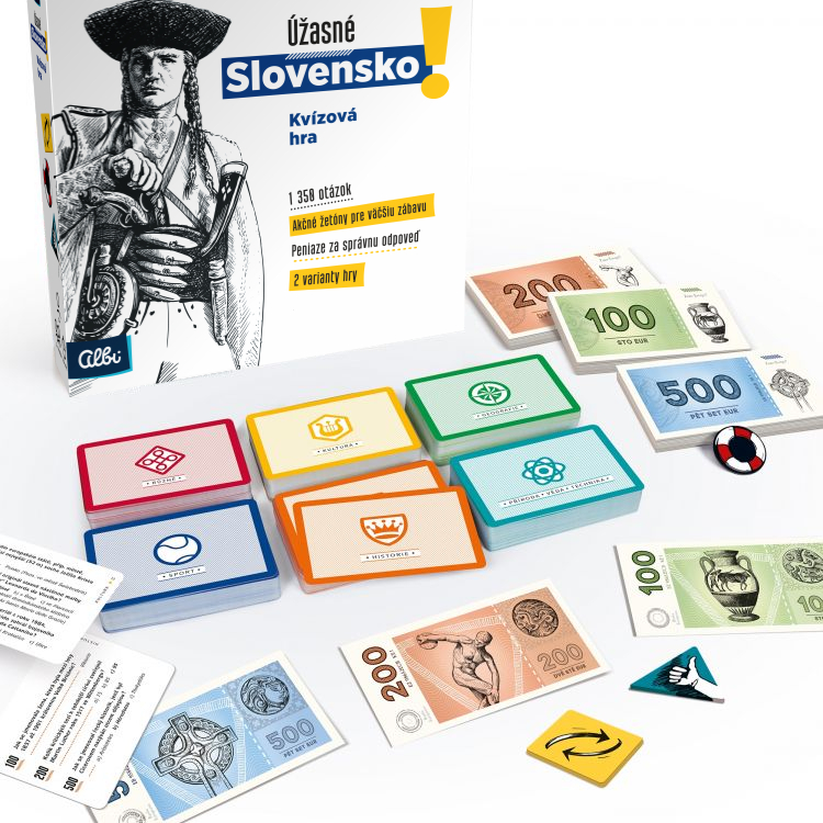 Po obľúbených kvízových hrách Úžasný svet a Úžasná Európa prichádza variant Úžasné Slovensko. V tejto kvízovej hre nájdete 1350 otázok rozdelených do 6 kategórií: história, kultúra, geografia, príroda/veda/technika, šport a rôzne.