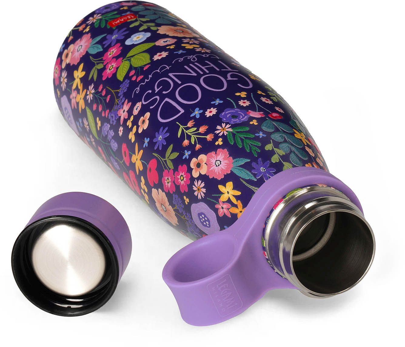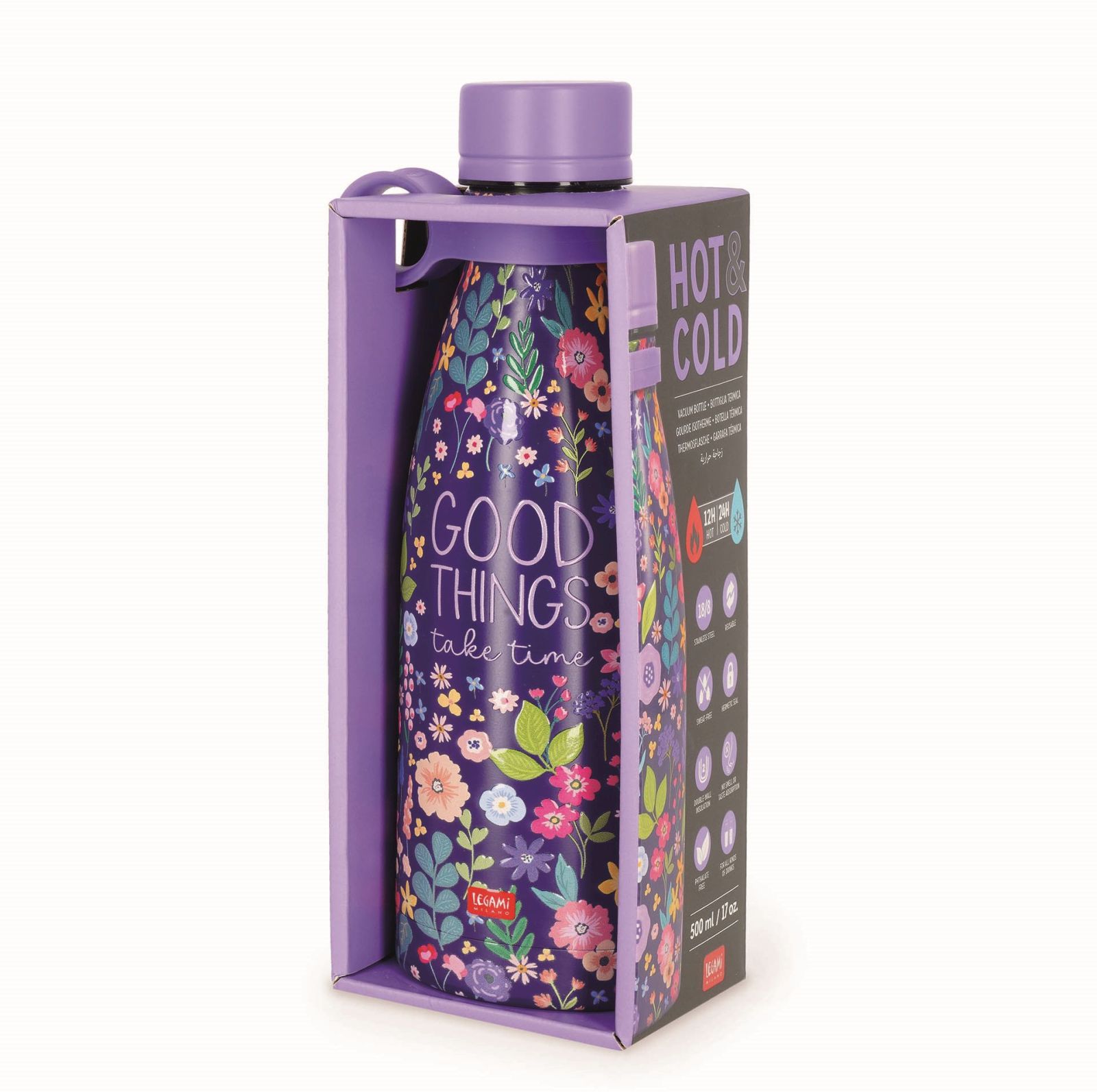 Dajte zbohom plastovým fľašiam a kelímkom s vákuovou fľašou Legami Hot&Cold 500 ml. Je vyrobená z ľahkej a odolnej dvojvrstvovej nehrdzavejúcej ocele, má hermeticky uzatvárateľné viečko a odnímateľné silikónové držadlo.