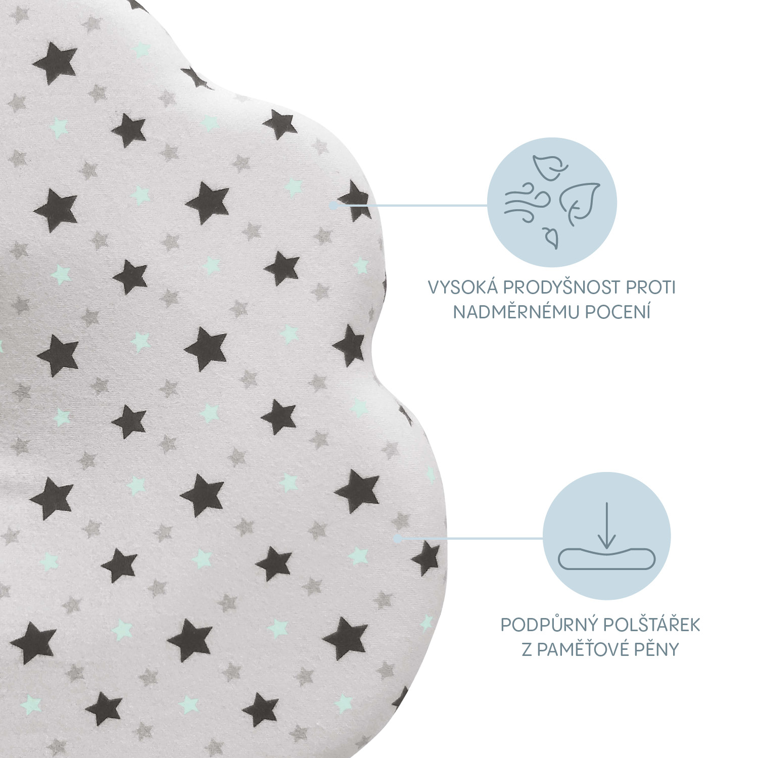 Podporný vankúš Mint stars Mäkký vankúš z pamäťovej peny vhodný pre deti od narodenia. Poskytn...zobraziť viac