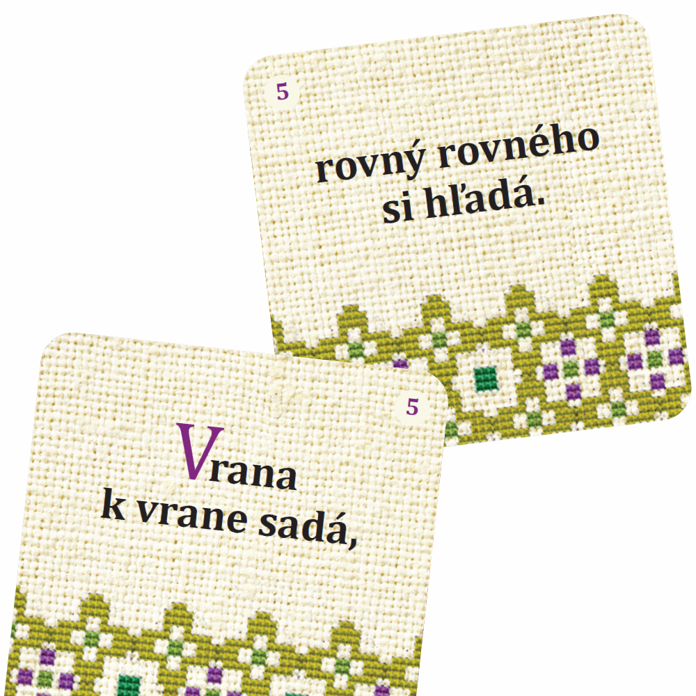 Máte radi pexeso? V tom prípade je Vedomostné pexeso - Porekadlá od ALBI pre vás ako stvorené. Odteraz nehľadáte jednoduché obrázky, ale páry informácií. Napr.: Otočíte kartičku na ktorej je napísané: "Kto do teba kameňom,". V tomto prípade musíte nájsť kartičku s odpoveďou: "ty do neho chlebom.". alebo Odkryjete kartičku: "Dovtedy sa chodí s krčahom po vodu," a musíte k nej získať druhú kartičku s odpoveďou "kým sa nerozbije". a tak ďalej. Podrobné pravidlá Vedomostné pexeso obsahuje 48 kartičiek, tj. 24 párov. Kartičky zamiešajte a rozložte lícom nadol, aby ste nevedeli ich rozloženie. Postupne otáčajte po dvoch kartičkách lícom nahor. Ak nájdete kartičky, ktoré patria k sebe, odoberte ich a otáčajte znova. Hľadajte informácie, ktoré k sebe patria. Ak si nie ste istí, či ste ich našli, skontrolujte si čísla na kartičkách, ktoré musia byť zhodné. Prípadne kartičky priložte k sebe a hneď zistíte, či vám vytvorili celý obrázok. Ak kartičky nepatria k sebe, otočte ich späť lícom nadol a v hre pokračuje ďalší hráč. Vyhráva hráč s najväčším počtom párov kartičiek.