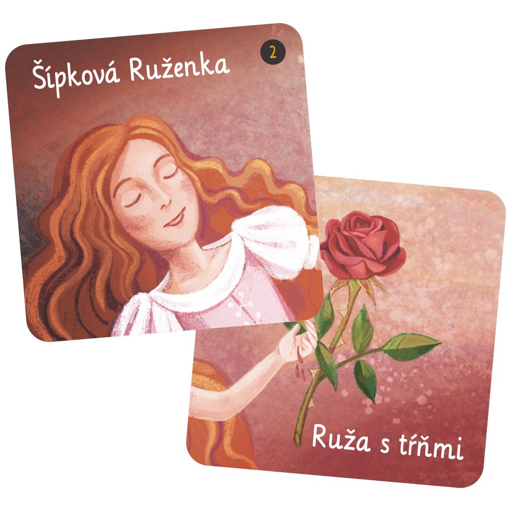 Detská verzia klasickej hry pexeso s motívom rozprávok. Obsahuje 48 kartičiek - 28 párov.