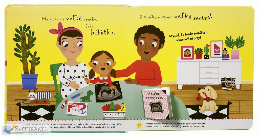 Mamičke rastie bruško a to znamená, že sa z Aničky stane veľká sestra. Čo to pre ňu ale skutočne znamená? A ako sa má k bábätku správať? Krátky príbeh opisuje Aničku, ktorá sa vyrovnáva s novou zmenou – do rodiny prichádza nový súrodenec. Ste doma v rovnakej situácii? Táto kniha pomôže nielen deťom, ale najmä ich rodičom. Na každej dvojstrane nájdete radu, ako pripraviť svoje dieťa na príchod ďalšieho bábätka, a tiež napríklad, aké kroky urobiť, aby sa vaše dieťa necítilo zanedbávané. Venujte pozornosť jeho pocitom a pomôžte mu s touto zmenou.