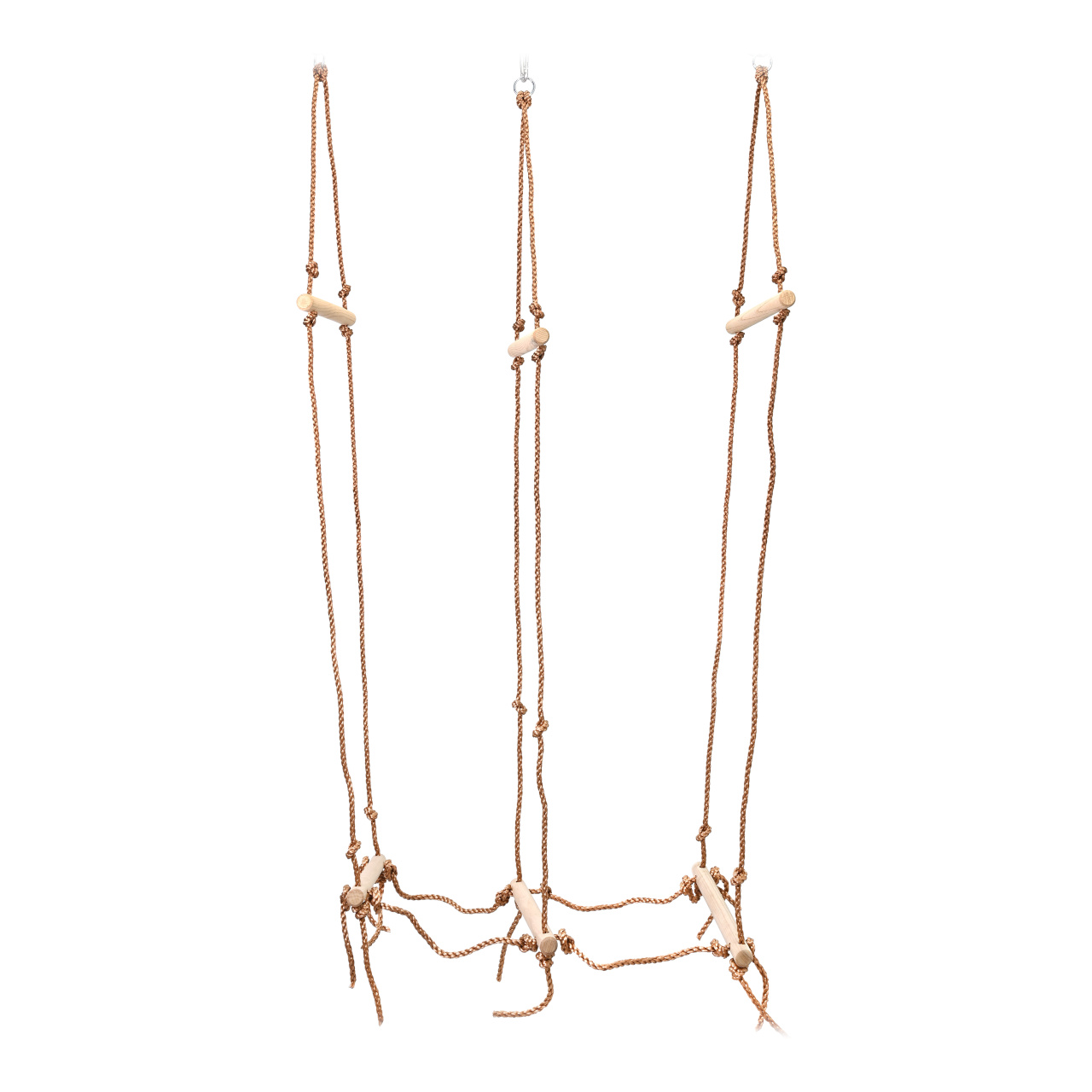 Visutý lanový most pre všetkých malých dobrodruhov, ktorí majú pre strach urobené. Tri nášľapné priečky sú vo výške zároveň vybavené madlami pre istý prechod cez prekážku. Hlavné vlastnosti:nosnosť 100 kgcelková dĺžka 85 cm, závesná výška 170 cmrozostup nášľapných priečok 40 cmvýška medzi priečkami a madlami 120 cm