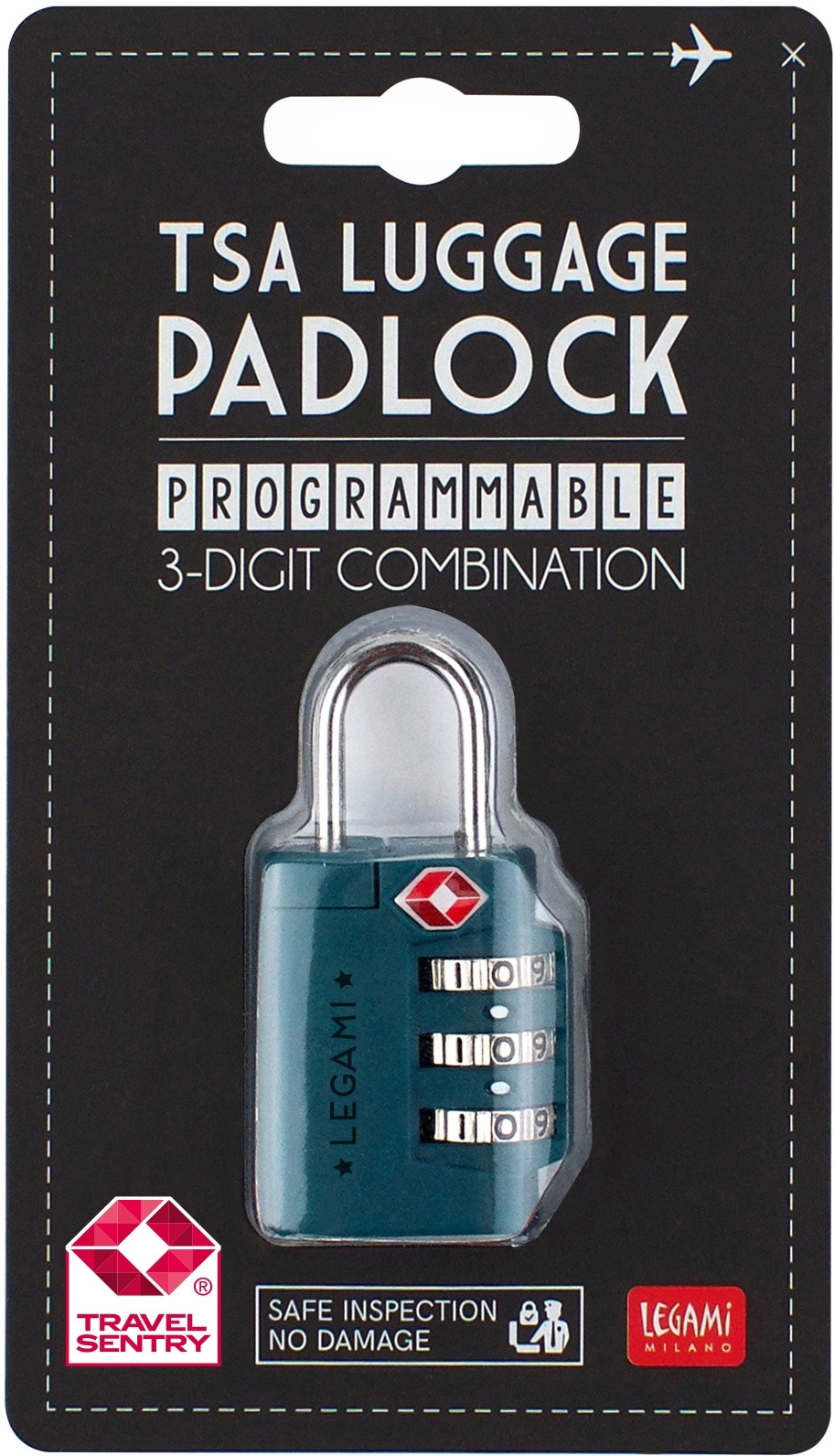 Cestujte s úplným pokojom vďaka visiacemu zámku na batožinu Legami. Nastavte trojmiestny kombinačný kód a nikto iný váš kufor neotvorí.