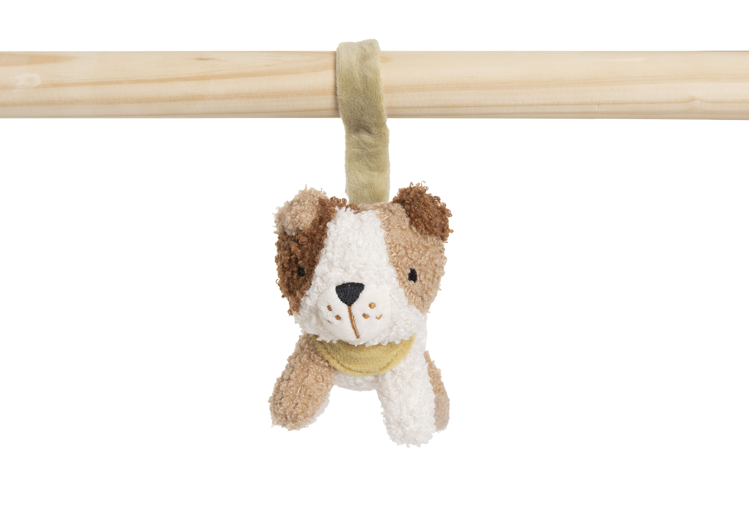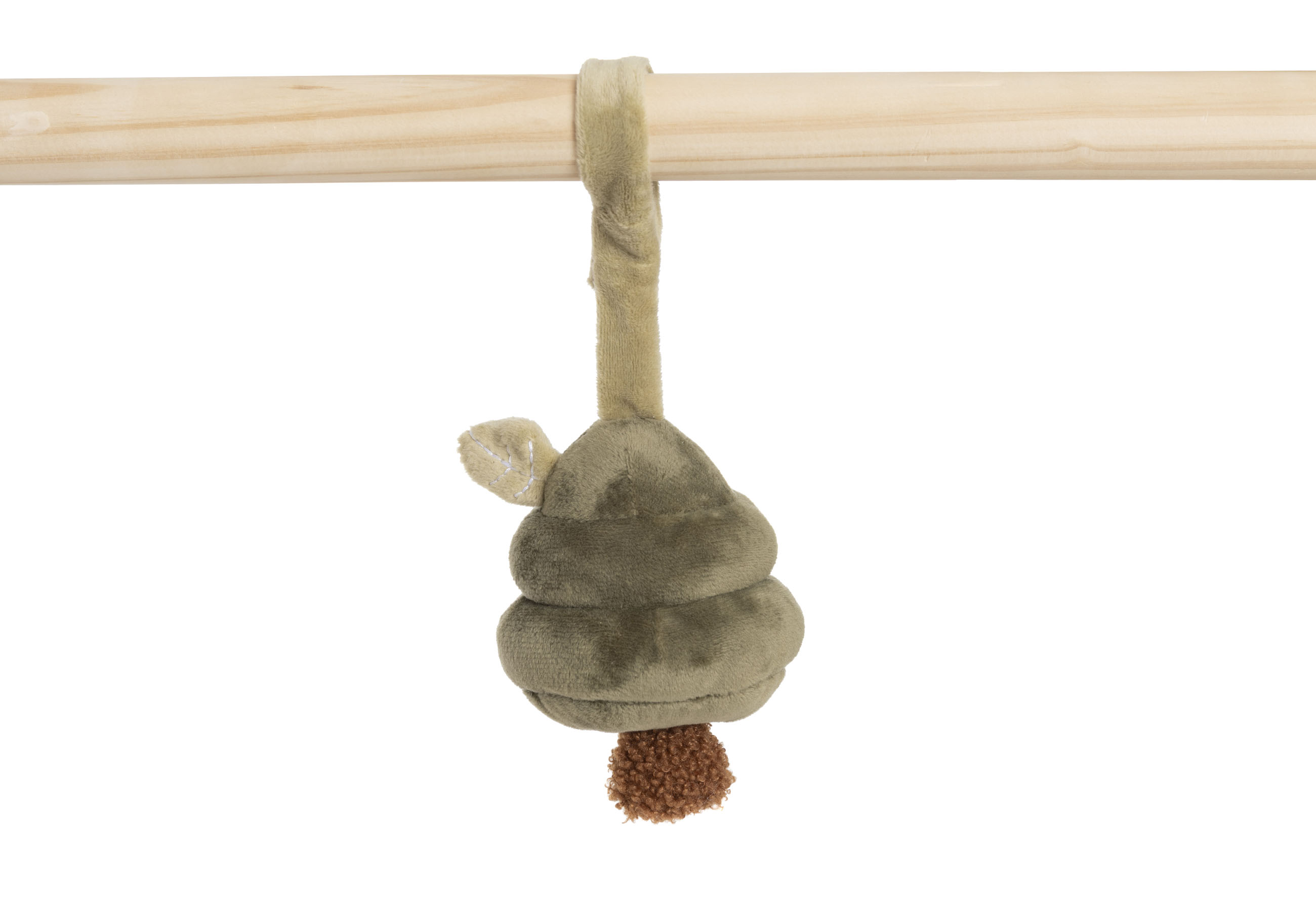 Sada troch mäkkých závesných hračiek je určená na zavesenie na drevenú hrazdičku (hrazda nie je súčasťou výrobku). Vďaka pútku na suchý zips ich môžete zavesiť aj na autosedačku, postieľku či kočík. Hračky lákajú dieťa na pozorovanie a skúmanie a podporujú tak rozvoj hmatu, zraku i koordinácie pohybov bábätka.